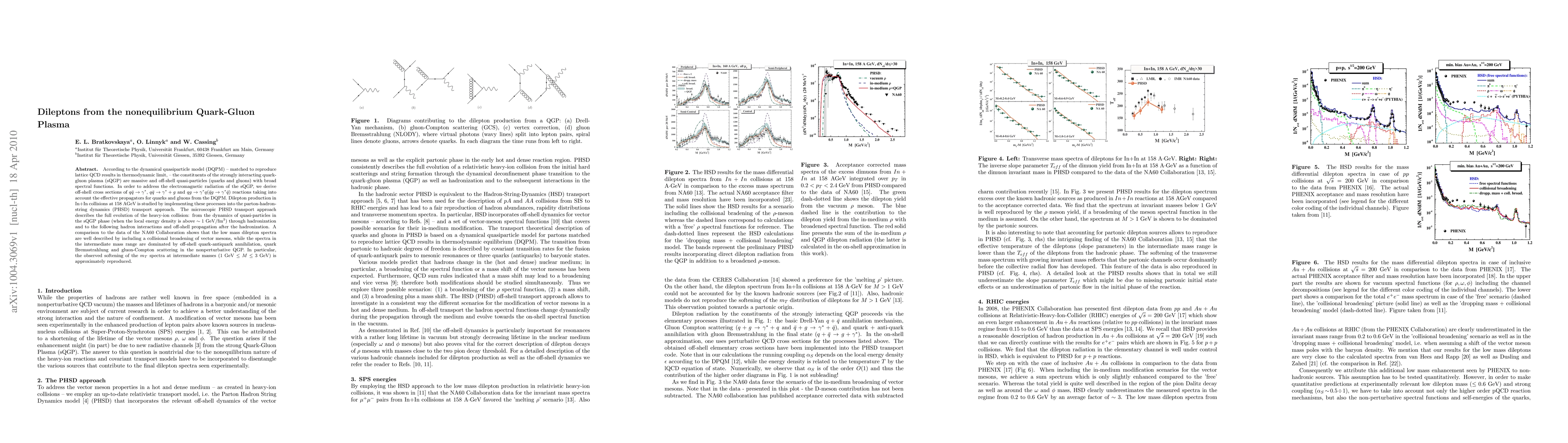 This paper investigates dilepton production in nonequilibrium quark-gluon plasma (sQGP) using the dynamical quasiparticle model (DQPM) and the PHSD transport approach. The study finds that low mass dilepton spectra are well described by collisional broadening, while intermediate mass spectra are dominated by off-shell quark-antiquark processes, accurately reproducing observed spectral features.