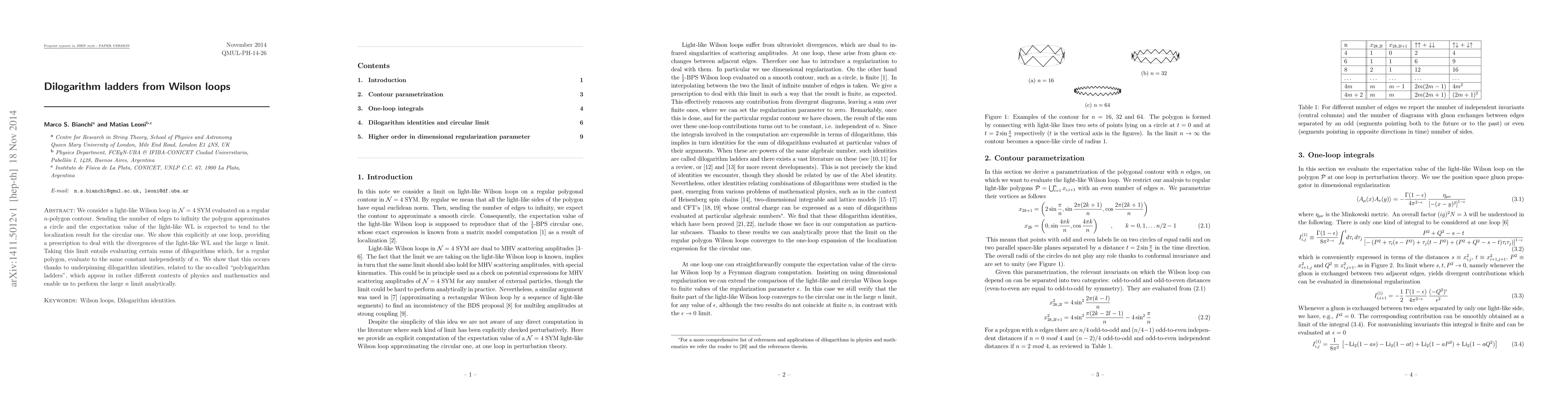We consider a light-like Wilson loop in N=4 SYM evaluated on a regular n-polygon contour. Sending the number of edges to infinity the polygon approximates a circle and the expectation value of the light-like WL is expected to tend to the localization result for the circular one. We show this explicitly at one loop, providing a prescription to deal with the divergences of the light-like WL and the large n limit. Taking this limit entails evaluating certain sums of dilogarithms which, for a regular polygon, evaluate to the same constant independently of n. We show that this occurs thanks to underpinning dilogarithm identities, related to the so-called polylogarithm ladders, which appear in rather different contexts of physics and mathematics and enable us to perform the large n limit analytically.