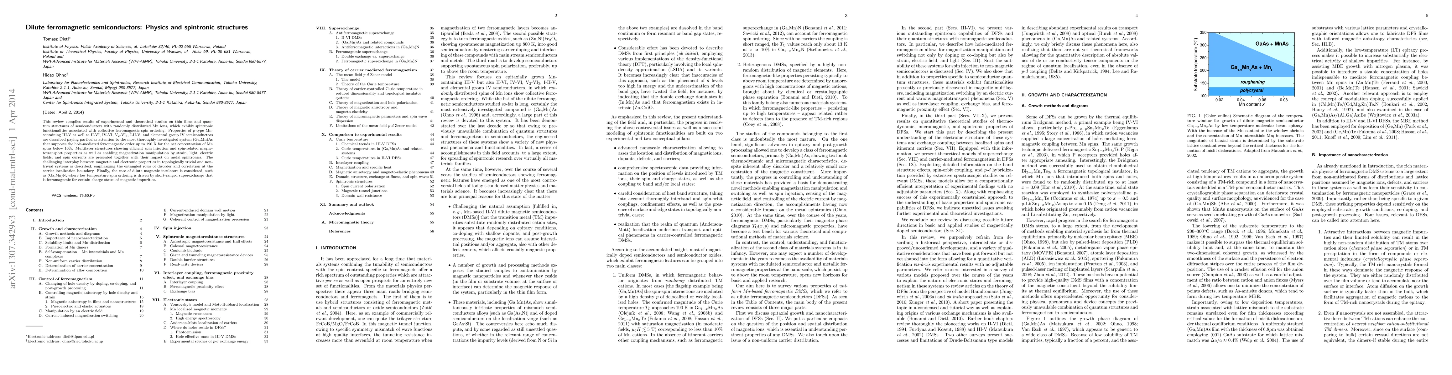 This review examines experimental and theoretical studies on dilute ferromagnetic semiconductors, focusing on their spintronic functionalities and the interplay between magnetic and electronic properties, with a particular emphasis on the GaMnAs system and its impact on multilayer spintronic structures. The work also discusses the roles of disorder and correlation in carrier localization and the spin ordering mechanisms in dilute magnetic insulators.