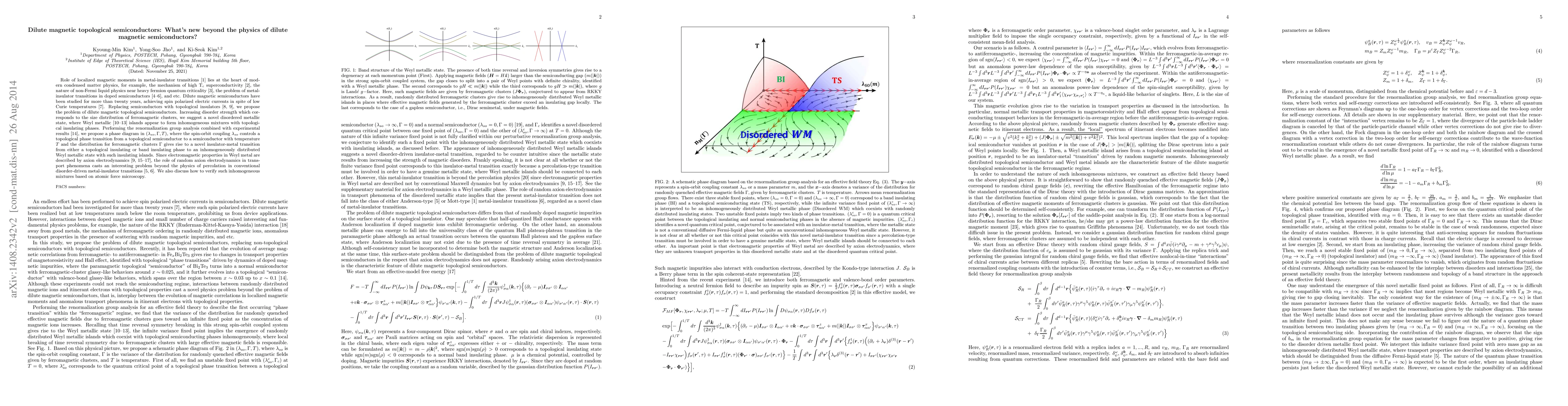This paper explores the novel physics of dilute magnetic topological semiconductors, proposing a phase diagram that reveals a transition from topological insulators to a disordered metallic state with Weyl metallic islands. It highlights the role of axion electrodynamics in transport phenomena and suggests experimental verification using atomic force microscopy.