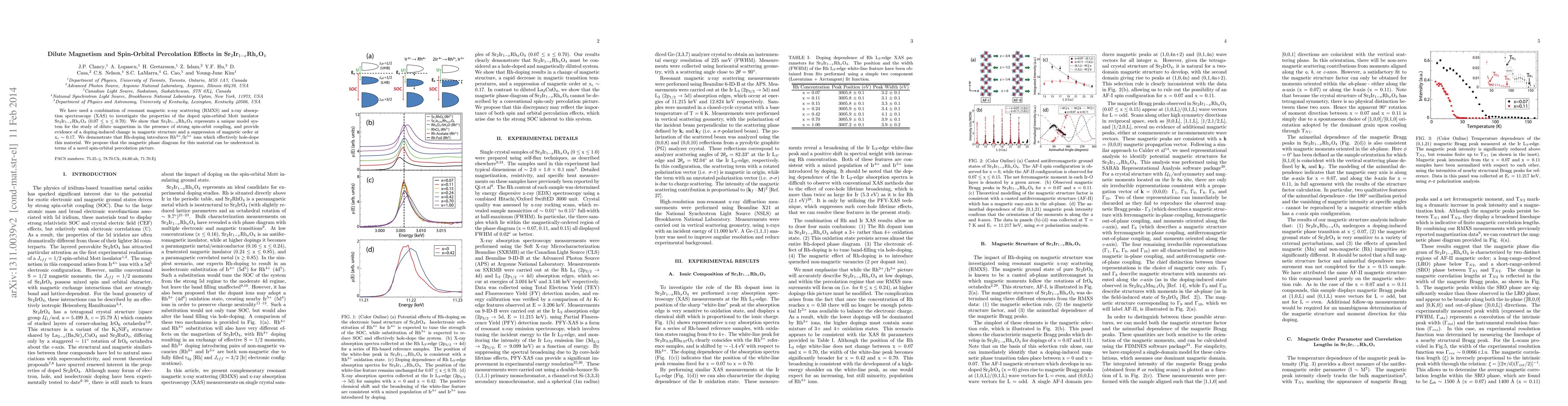 This study utilizes RMXS and XAS to explore the magnetic properties of Rh-doped Sr2IrO4, revealing a doping-induced change in magnetic structure and suppression of magnetic order at a critical concentration. The findings suggest a novel spin-orbital percolation model for understanding the dilute magnetism in this system.