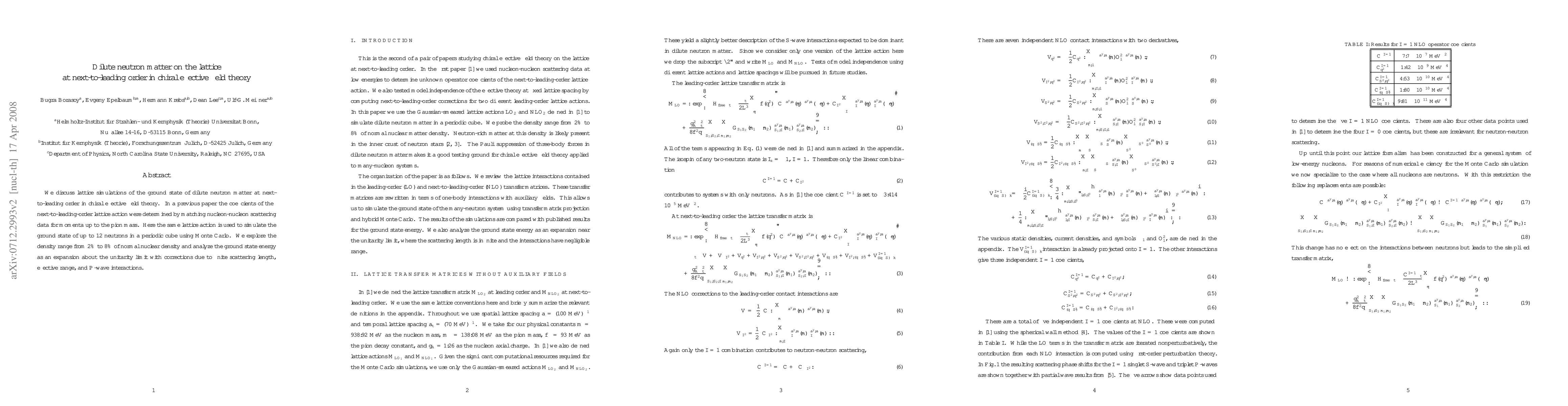 We discuss lattice simulations of the ground state of dilute neutron matter at next-to-leading order in chiral effective field theory. In a previous paper the coefficients of the next-to-leading-order lattice action were determined by matching nucleon-nucleon scattering data for momenta up to the pion mass. Here the same lattice action is used to simulate the ground state of up to 12 neutrons in a periodic cube using Monte Carlo. We explore the density range from 2% to 8% of normal nuclear density and analyze the ground state energy as an expansion about the unitarity limit with corrections due to finite scattering length, effective range, and P-wave interactions.