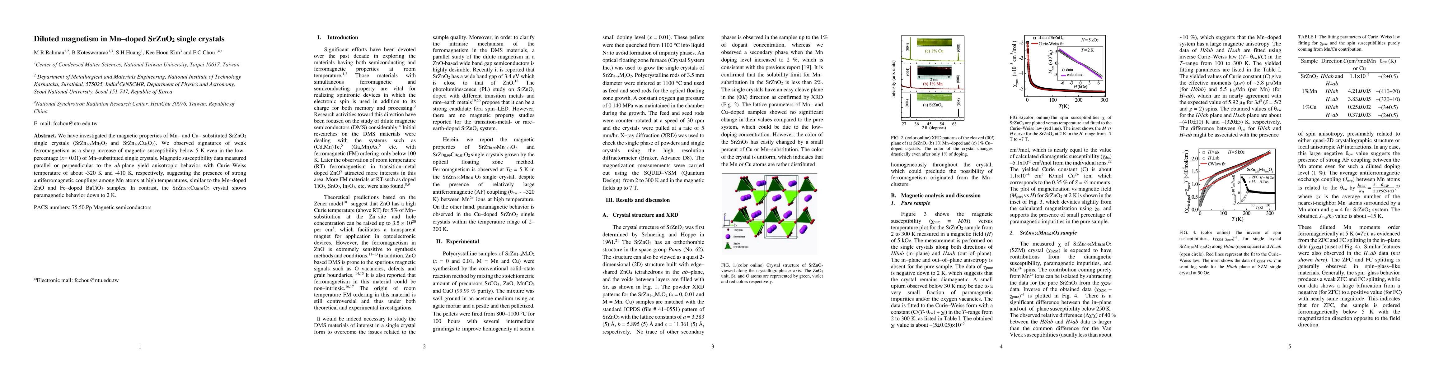 We have investigated the magnetic properties of Mn and Cu substituted SrZnO2 single crystals (SrZn0.99Mn0.01O2 and SrZn0.99Cu0.01O2). We observed signatures of weak ferromagnetism as a sharp increase of magnetic susceptibility below 5 K even in the low percentage (x= 0.01) of Mn substituted single crystals. Magnetic susceptibility data measured parallel or perpendicular to the ab plane yield anisotropic behavior with Curie Weiss temperature of about -320 K and -410 K, respectively, suggesting the presence of strong antiferromagnetic couplings among Mn atoms at high temperatures, similar to the Mn doped ZnO and Fe doped BaTiO3 samples. In contrast, the SrZn0.99Cu0.01O2 crystal shows paramagnetic behavior down to 2 K.