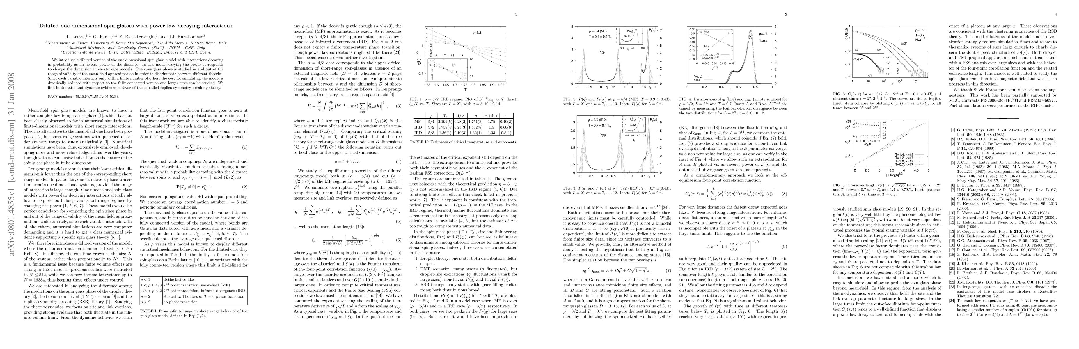 We introduce a diluted version of the one dimensional spin-glass model with interactions decaying in probability as an inverse power of the distance. In this model varying the power corresponds to change the dimension in short-range models. The spin-glass phase is studied in and out of the range of validity of the mean-field approximation in order to discriminate between different theories. Since each variable interacts only with a finite number of others the cost for simulating the model is drastically reduced with respect to the fully connected version and larger sizes can be studied. We find both static and dynamic evidence in favor of the so-called replica symmetry breaking theory.