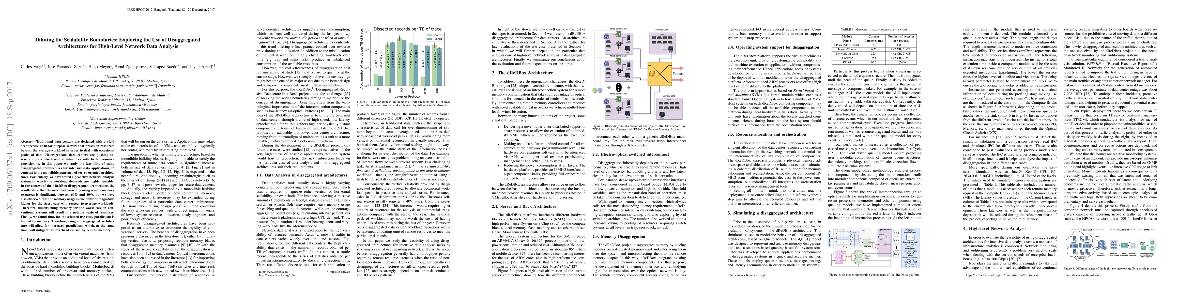 This paper investigates the scalability of disaggregated architectures for high-level network data analysis, finding significant overhead due to remote memory but also revealing that such architectures can substantially increase parallelism and resource efficiency compared to traditional monolithic server-oriented designs.