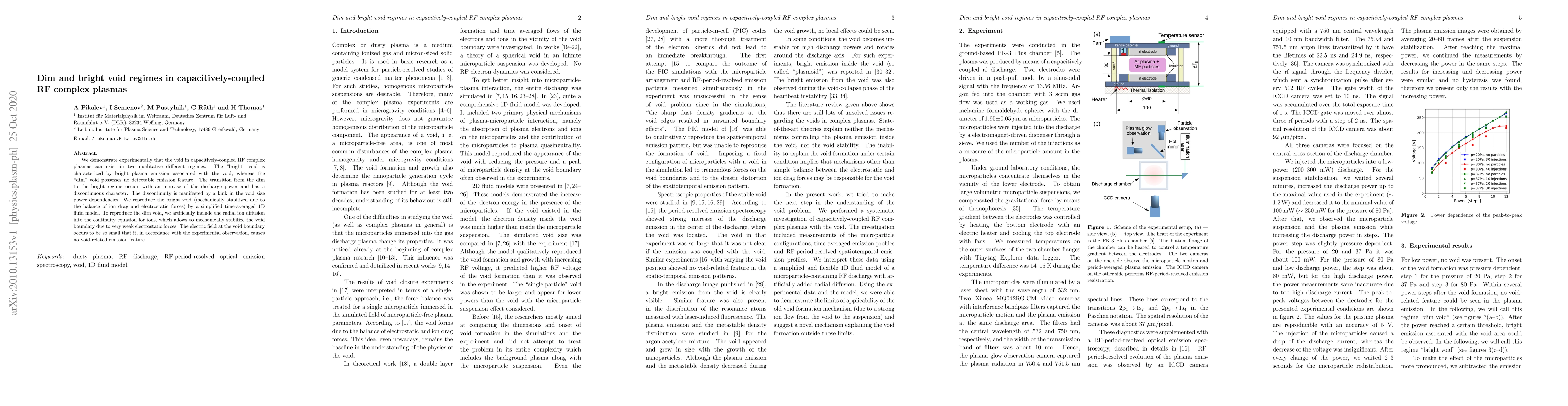 This paper experimentally identifies two distinct regimes in capacitively-coupled RF complex plasmas: a "bright" void with detectable emission and a "dim" void with no emission. The transition between these regimes is discontinuous and influenced by discharge power.