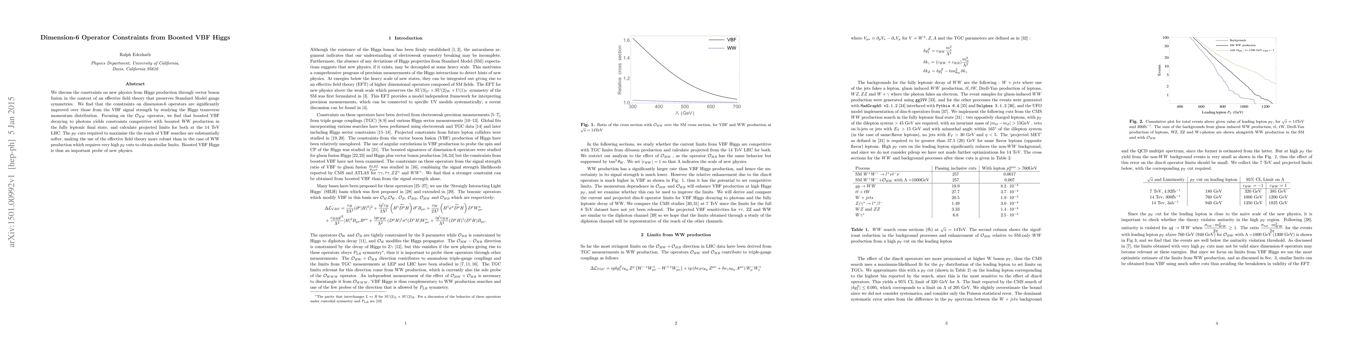 This paper investigates the constraints on dimension-6 operators from Higgs production via vector boson fusion, finding that boosted VBF decaying to photons provides competitive limits on the $\mathcal{O}_{HW}$ operator compared to boosted WW production. The study highlights that VBF searches require softer $p_T$ cuts, making them more robust and an important probe of new physics.