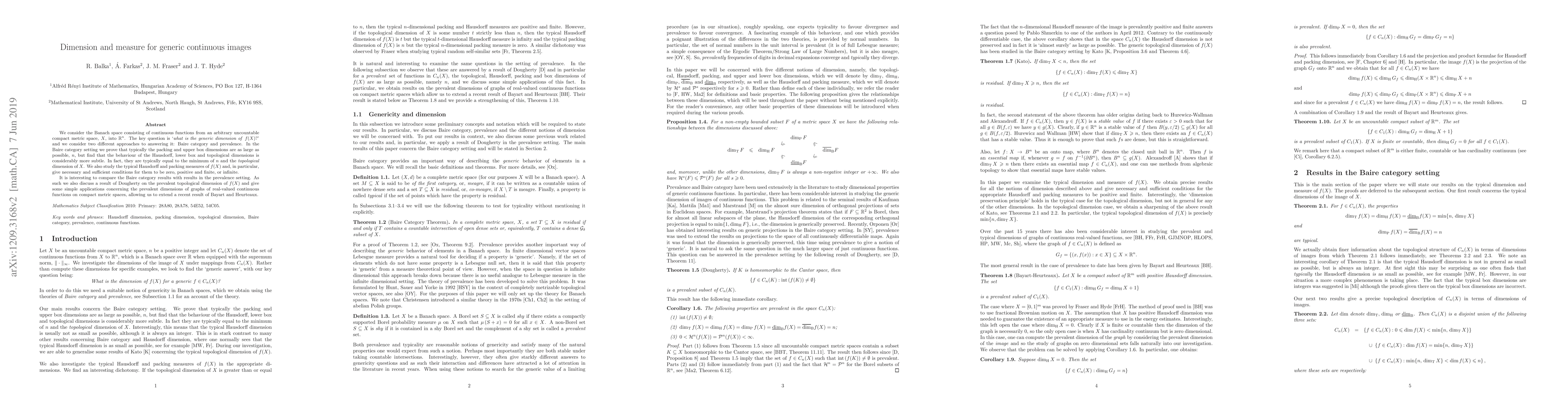 This paper explores the dimension and measure of continuous images of uncountable compact metric spaces into $\mathbb{R}^n$, using Baire category and prevalence approaches. It finds that typical packing and upper box dimensions reach $n$, while Hausdorff, lower box, and topological dimensions are generally the minimum of $n$ and the topological dimension of $X$.