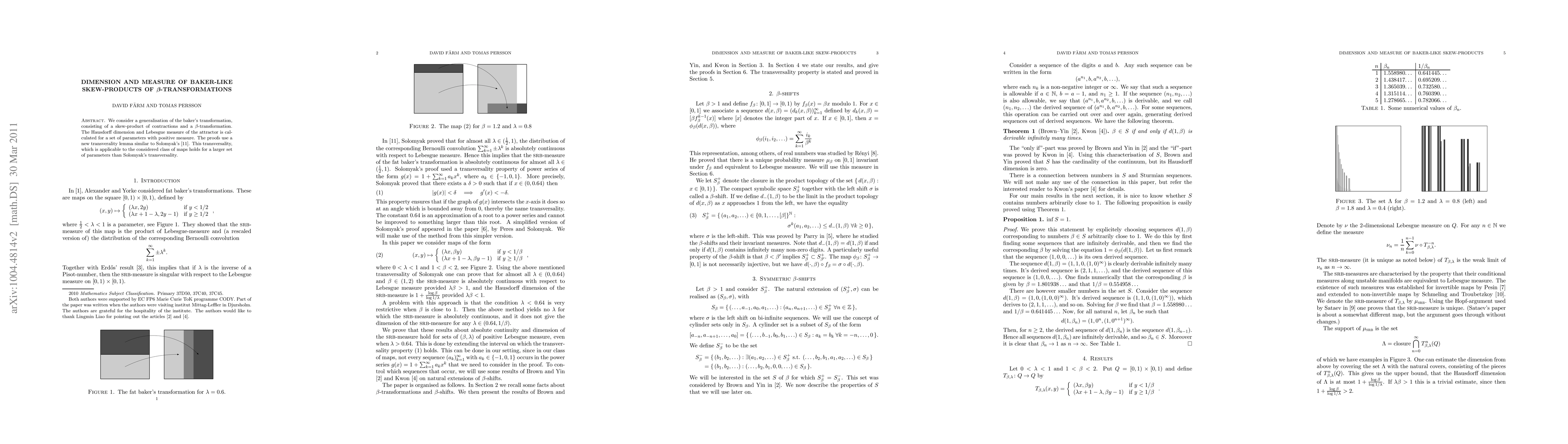 We consider a generalisation of the baker's transformation, consisting of a skew-product of contractions and a $\beta$-transformation. The Hausdorff dimension and Lebesgue measure of the attractor is calculated for a set of parameters with positive measure. The proofs use a new transverality lemma similar to Solomyak's [Solomyak, 1995]. This transversality, which is applicable to the considered class of maps holds for a larger set of parameters than Solomyak's transversality.