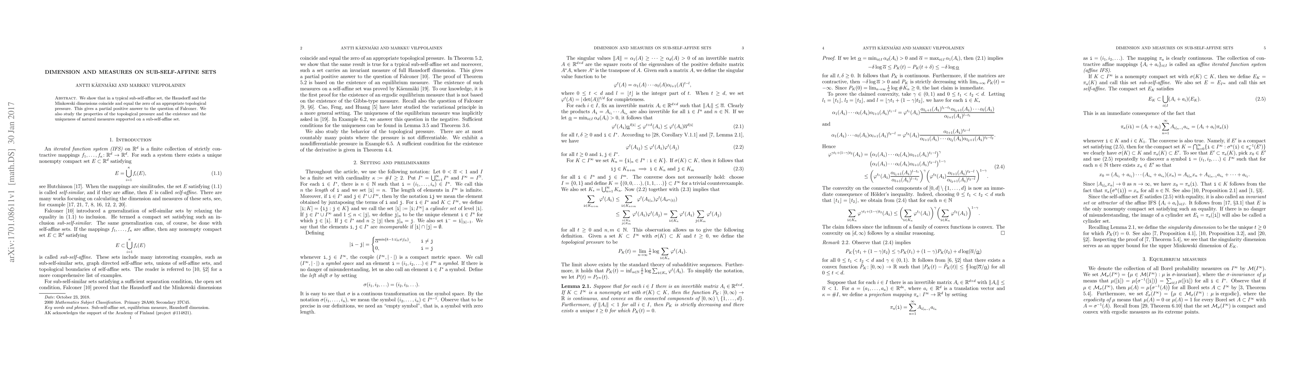 This paper demonstrates that in typical sub-self-affine sets, the Hausdorff and Minkowski dimensions are equal and determined by the zero of a suitable topological pressure. It also investigates the properties of topological pressure and the existence and uniqueness of natural measures on these sets.