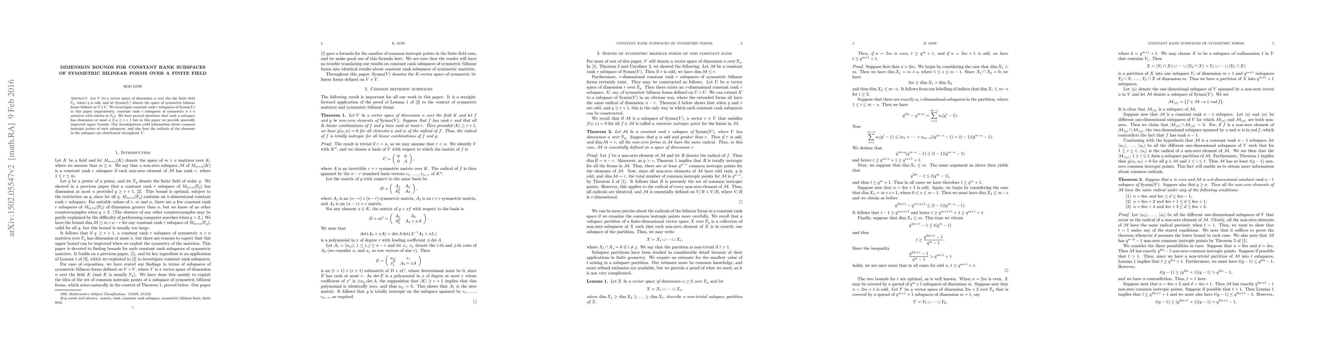 Researchers investigate upper bounds for constant rank subspaces of symmetric bilinear forms over finite fields, providing insights into isotropic points and radical distributions.