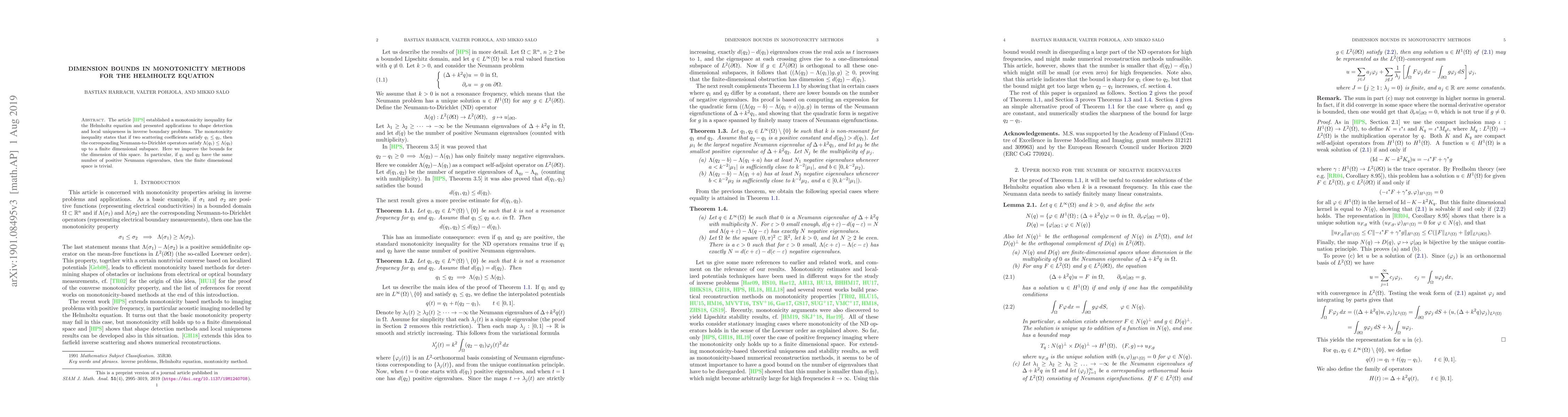 The article [HPS] established a monotonicity inequality for the Helmholtz equation and presented applications to shape detection and local uniqueness in inverse boundary problems. The monotonicity inequality states that if two scattering coefficients satisfy $q_1 \leq q_2$, then the corresponding Neumann-to-Dirichlet operators satisfy $\Lambda(q_1) \leq \Lambda(q_2)$ up to a finite dimensional subspace. Here we improve the bounds for the dimension of this space. In particular, if $q_1$ and $q_2$ have the same number of positive Neumann eigenvalues, then the finite dimensional space is trivial.