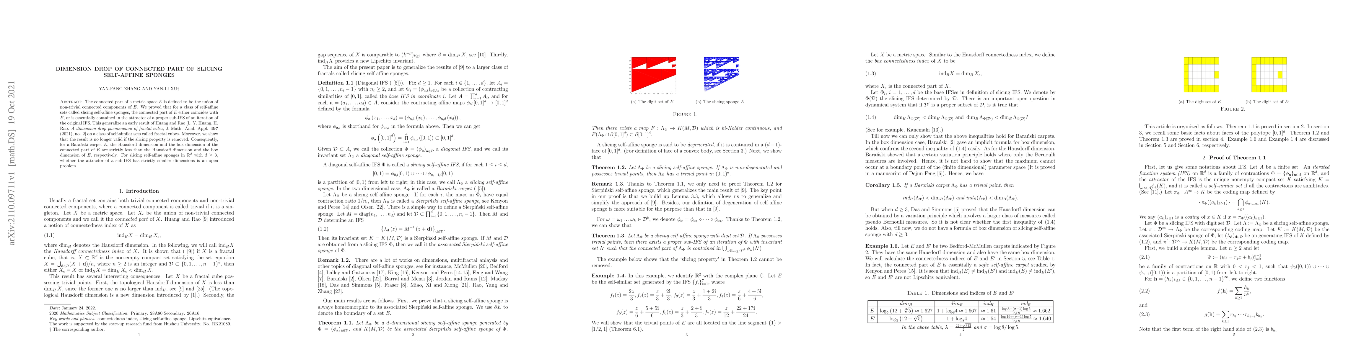 The paper proves that the connected part of slicing self-affine sponges either coincides with the whole set or is contained in a sub-attractor, generalizing results for fractal cubes. The dimension drop phenomenon does not apply without the slicing property, as demonstrated with Barański carpets.