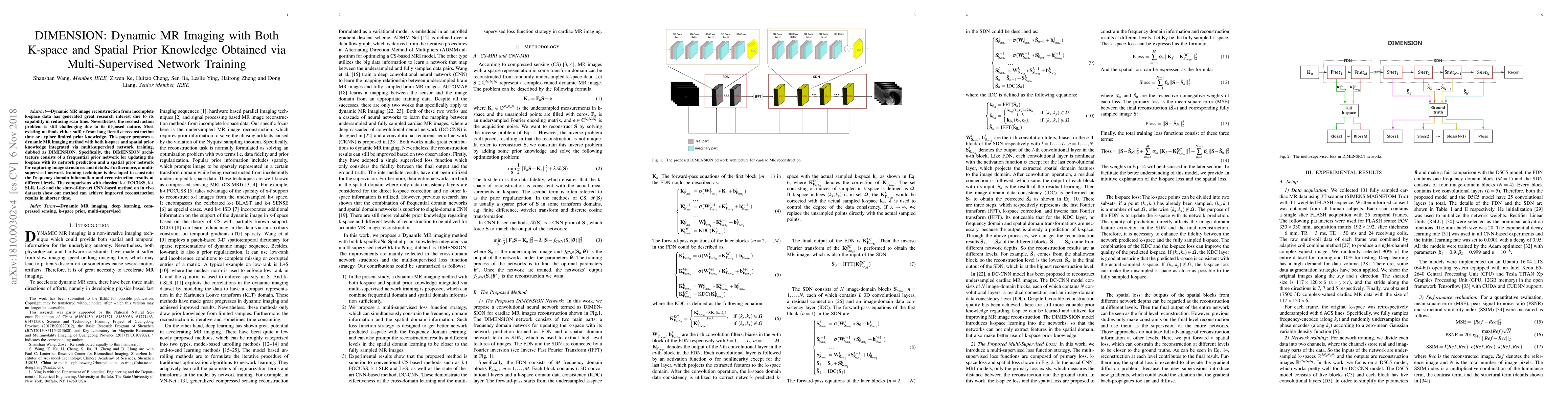 This paper introduces DIMENSION, a dynamic MR imaging method that leverages both k-space and spatial prior knowledge through multi-supervised network training to reconstruct images from incomplete k-space data, achieving better results and faster reconstruction times compared to existing methods.