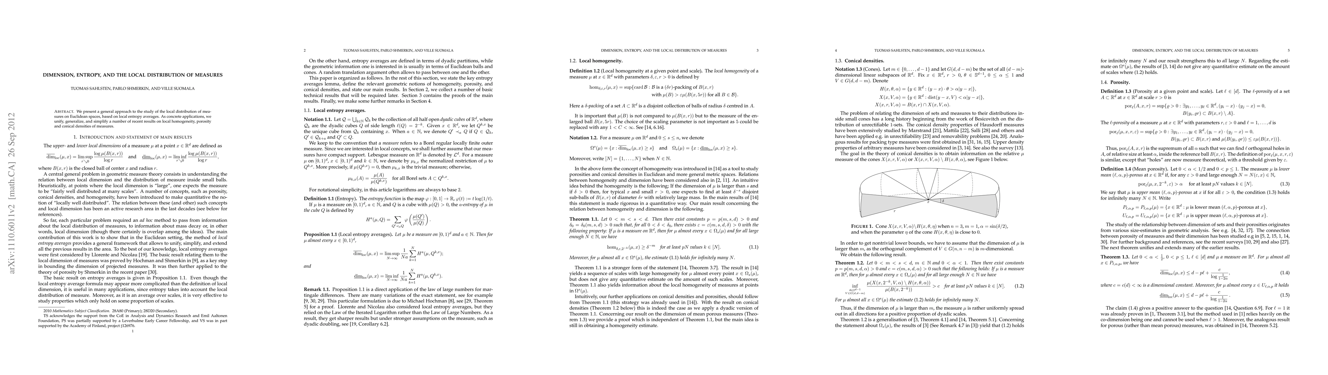 This paper introduces a method for studying the local distribution of measures in Euclidean spaces using local entropy averages, and applies this approach to unify, generalize, and simplify recent findings on local homogeneity, porosity, and conical densities.
