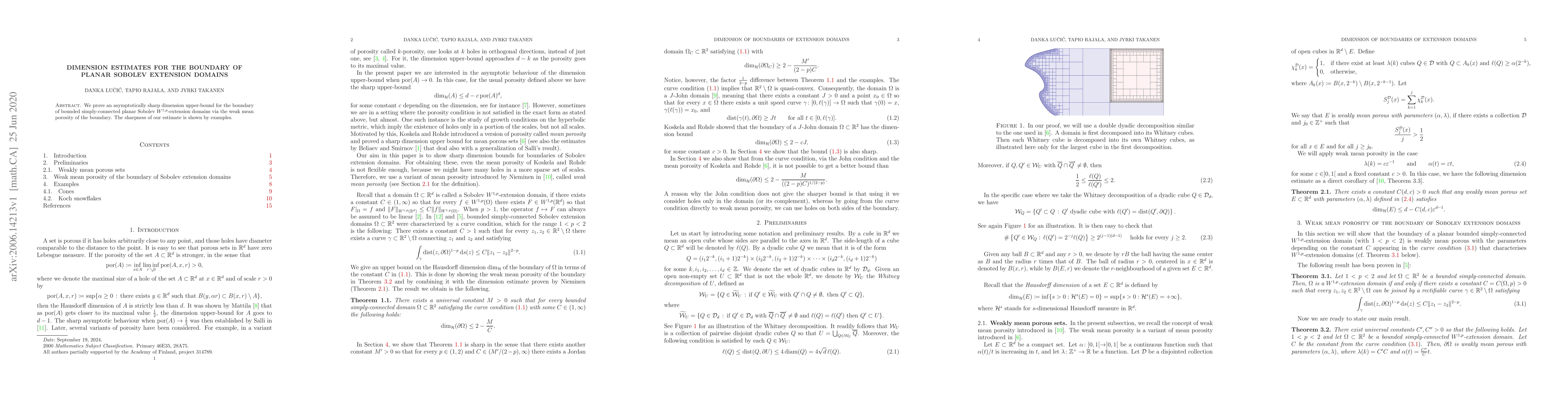 Researchers prove an upper-bound of 8 for the dimension of boundaries in planar Sobolev extension domains, sharpened by examples, using weak mean porosity of the boundary.