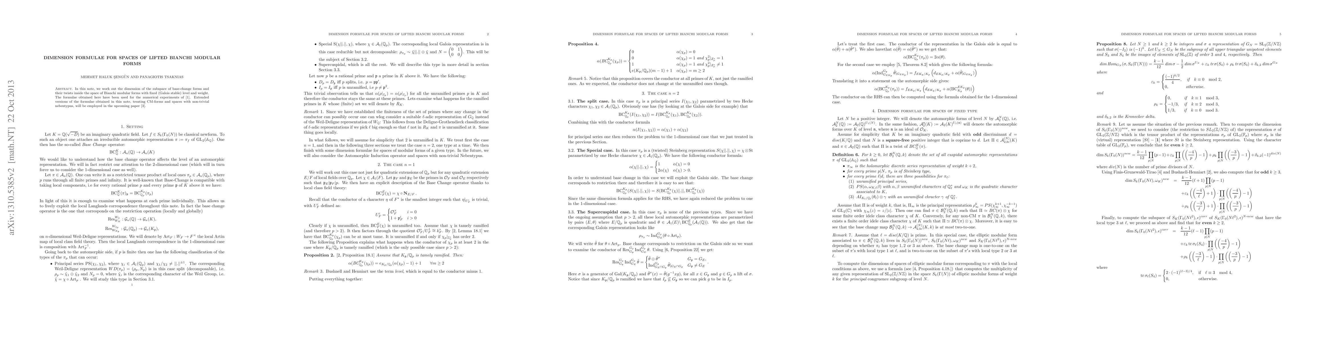 In this note, we work out the dimension of the subspace of base-change forms and their twists inside the space of Bianchi modular forms with fixed (Galois stable) level and weight.