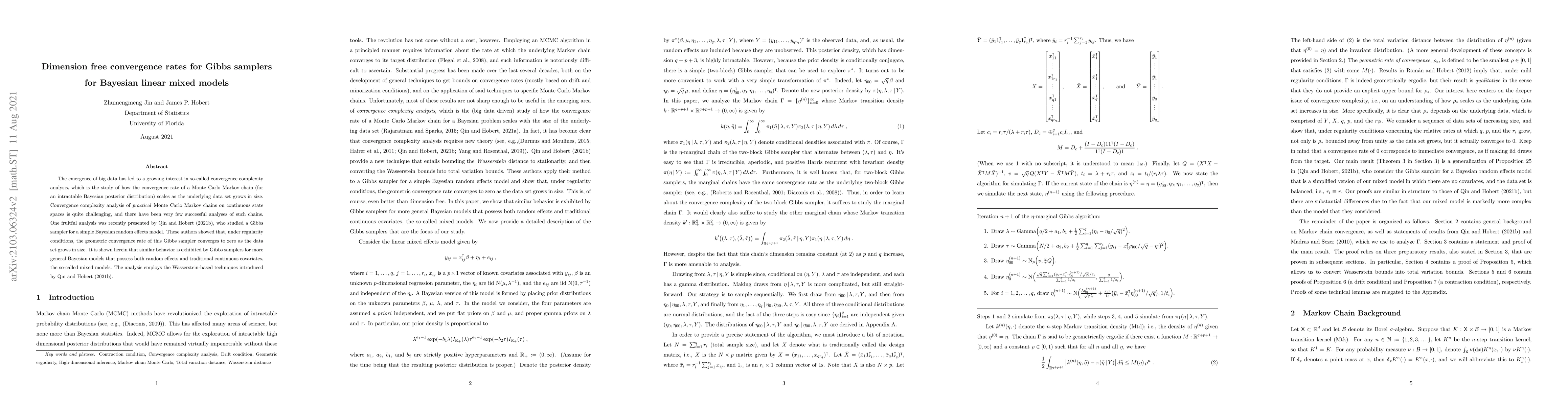 This paper investigates the convergence rates of Gibbs samplers for Bayesian linear mixed models, demonstrating that they exhibit dimension-free convergence rates similar to those found in simpler models. The study employs Wasserstein-based techniques to analyze the scaling behavior of these samplers as data size increases.