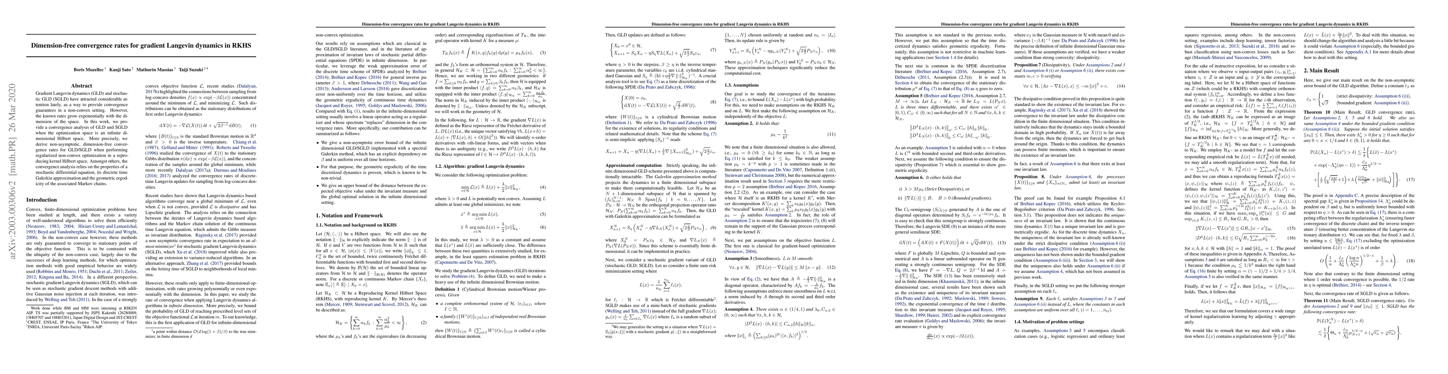This paper presents a convergence analysis of gradient Langevin dynamics (GLD) and stochastic GLD (SGLD) in infinite-dimensional Hilbert spaces, achieving dimension-free convergence rates for regularized non-convex optimization in reproducing kernel Hilbert spaces. The analysis leverages properties of stochastic differential equations, their discrete approximations, and the geometric ergodicity of associated Markov chains.