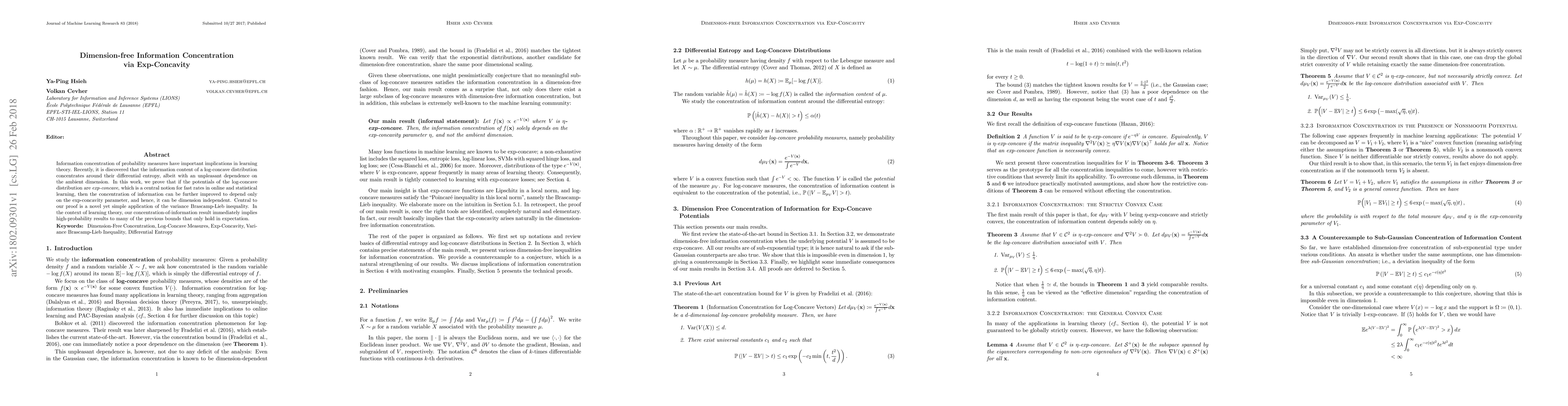 The paper utilizes exp-concavity of log-concave distributions to prove dimension-free information concentration, employing the variance Brascamp-Lieb inequality in the proof.