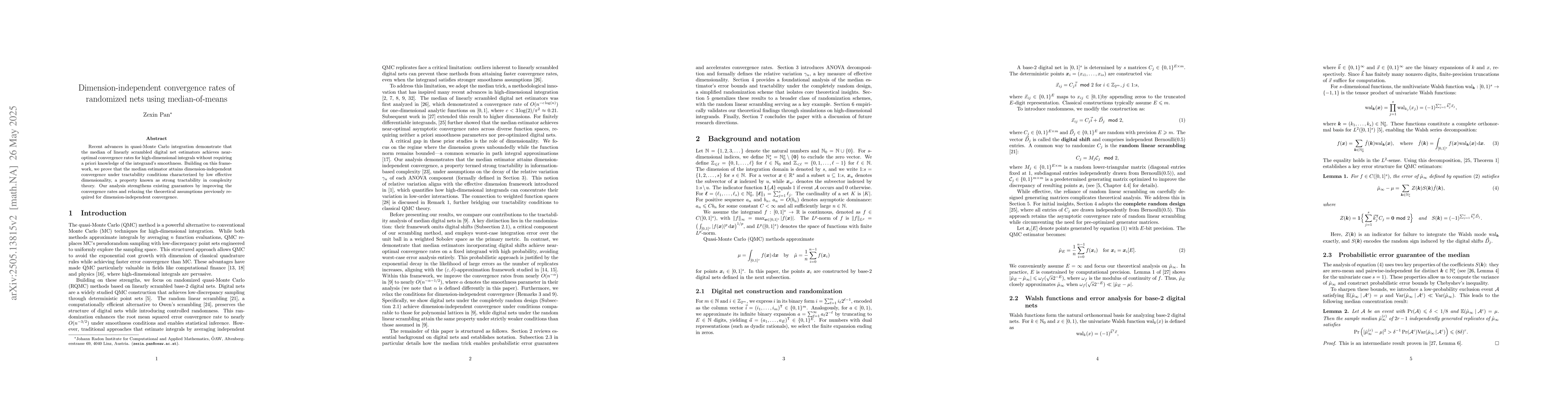 The research builds on the framework of quasi-Monte Carlo integration, specifically focusing on median-of-means estimators with linearly scrambled digital nets.