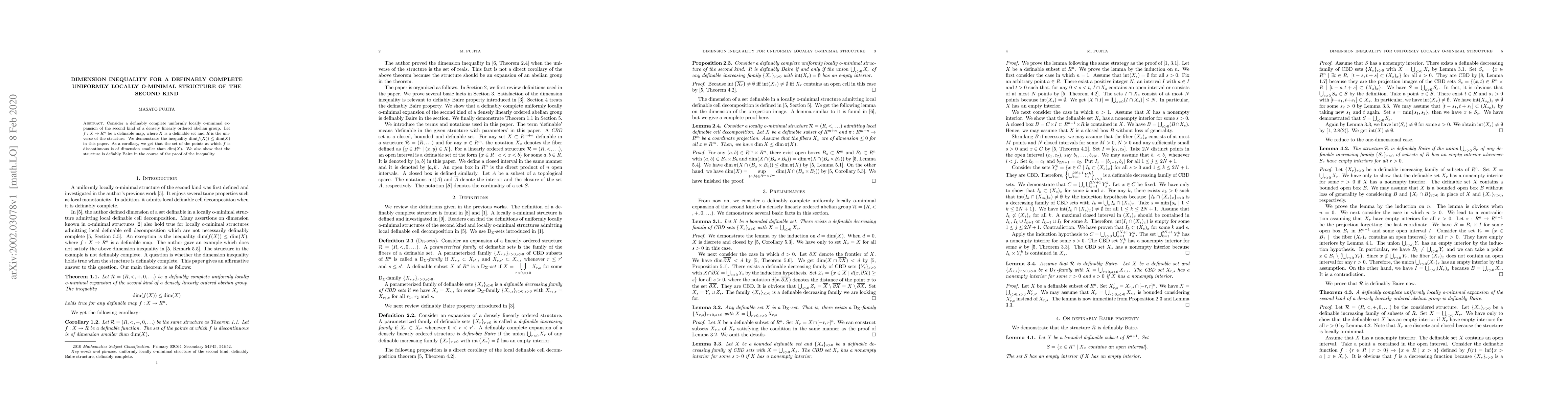 This paper proves the dimension inequality $\dim(f(X)) \leq \dim(X)$ for a definably complete uniformly locally o-minimal expansion of the second kind, showing that the set of discontinuities of $f$ has lower dimension. Additionally, it establishes the defiably Baire property of the structure.