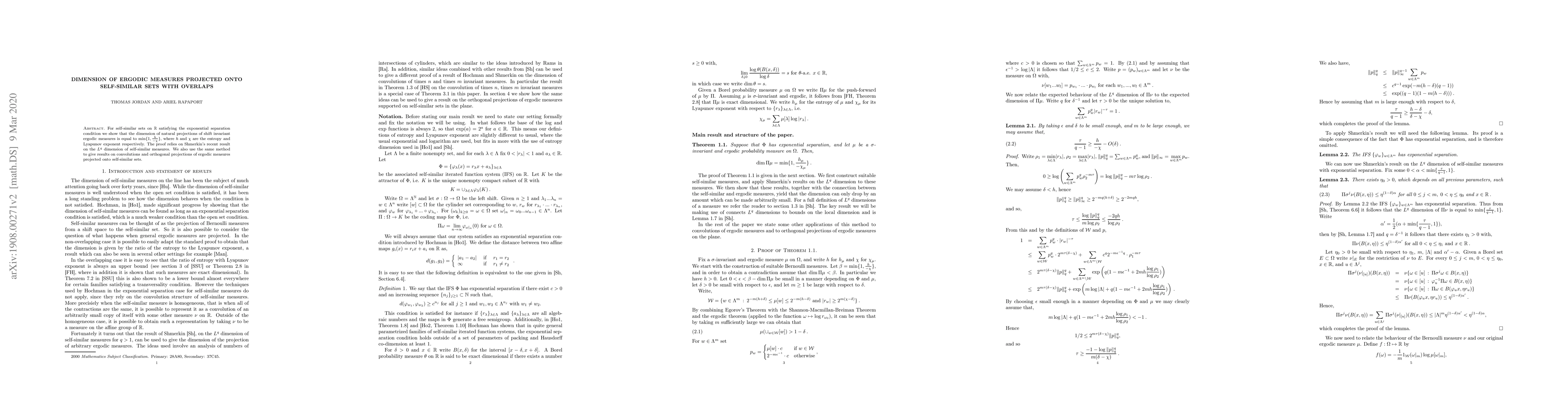 This paper demonstrates that for self-similar sets on $\mathbb{R}$ with the exponential separation condition, the dimension of the projected shift invariant ergodic measures equals $\min\{1,\frac{h}{-\chi}\}$, where $h$ and $\chi$ are the entropy and Lyapunov exponent respectively. The proof leverages Shmerkin's findings on the $L^{q}$ dimension of self-similar measures.