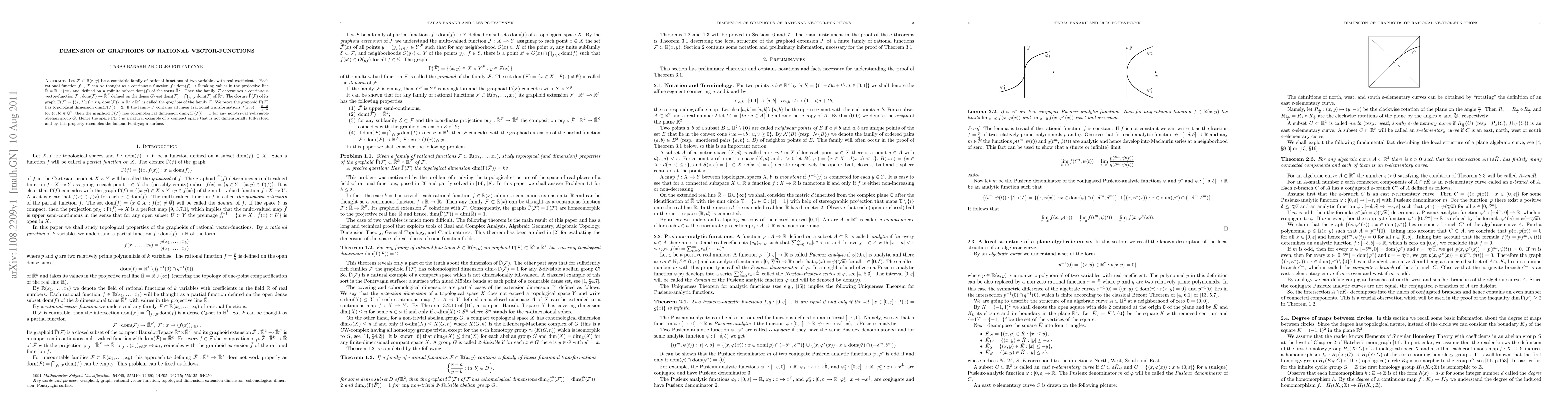 Let $F$ be a countable family of rational functions of two variables with real coefficients. Each rational function $f\in F$ can be thought as a continuous function $f:dom(f)\to\bar R$ taking values in the projective line $\bar R=R\cup\{\infty\}$ and defined on a cofinite subset $dom(f)$ of the torus $\bar R^2$. Then the family $\F$ determines a continuous vector-function $F:dom(F)\to\bar R^F$ defined on the dense $G_\delta$-set $dom(F)=\bigcap_{f\in F}dom(F)$ of $\bar R^2$. The closure $\bar\Gamma(F)$ of its graph $\Gamma(F)=\{(x,f(x)):x\in dom(F)\}$ in $\bar R^2\times\bar R^F$ is called the {\em graphoid} of the family $F$. We prove the graphoid $\bar\Gamma(F)$ has topological dimension $dim(\bar\Gamma(F))=2$. If the family $F$ contains all linear fractional transformations $f(x,y)=\frac{x-a}{y-b}$ for $(a,b)\in Q^2$, then the graphoid $\bar\Gamma(F)$ has cohomological dimension $dim_G(\bar\Gamma(F))=1$ for any non-trivial 2-divisible abelian group $G$. Hence the space $\bar\Gamma(F)$ is a natural example of a compact space that is not dimensionally full-valued and by this property resembles the famous Pontryagin surface.