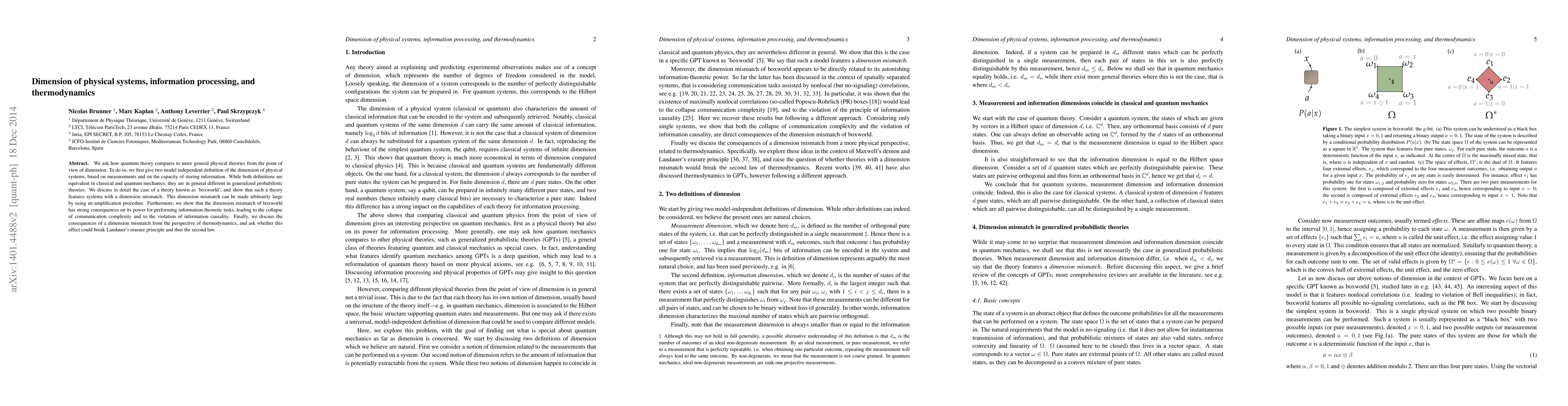 This paper investigates the dimension of physical systems in quantum theory compared to generalized probabilistic theories, highlighting a dimension mismatch in 'boxworld' that impacts information processing and thermodynamics, potentially violating information causality and Landauer's principle.