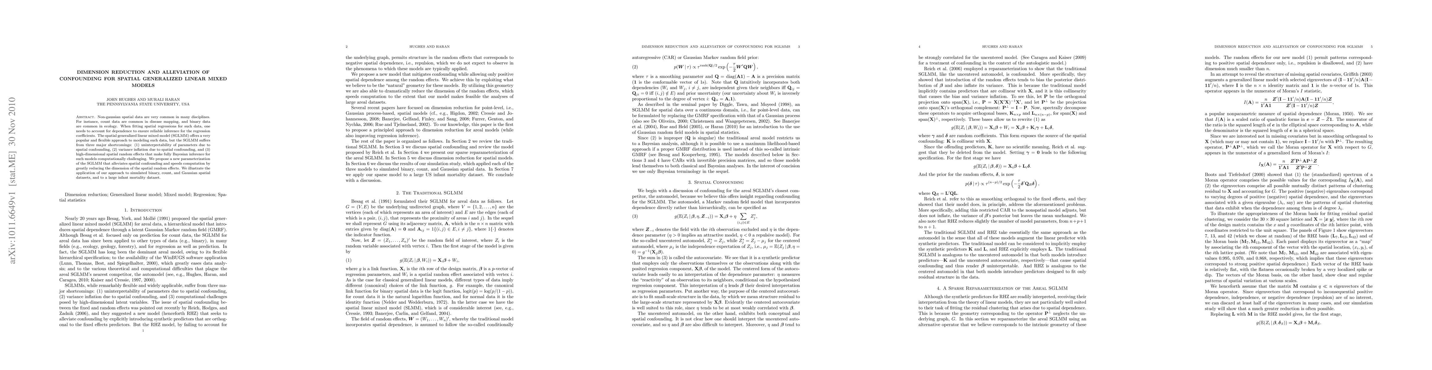 Non-gaussian spatial data are very common in many disciplines. For instance, count data are common in disease mapping, and binary data are common in ecology. When fitting spatial regressions for such data, one needs to account for dependence to ensure reliable inference for the regression coefficients. The spatial generalized linear mixed model (SGLMM) offers a very popular and flexible approach to modeling such data, but the SGLMM suffers from three major shortcomings: (1) uninterpretability of parameters due to spatial confounding, (2) variance inflation due to spatial confounding, and (3) high-dimensional spatial random effects that make fully Bayesian inference for such models computationally challenging. We propose a new parameterization of the SGLMM that alleviates spatial confounding and speeds computation by greatly reducing the dimension of the spatial random effects. We illustrate the application of our approach to simulated binary, count, and Gaussian spatial datasets, and to a large infant mortality dataset.