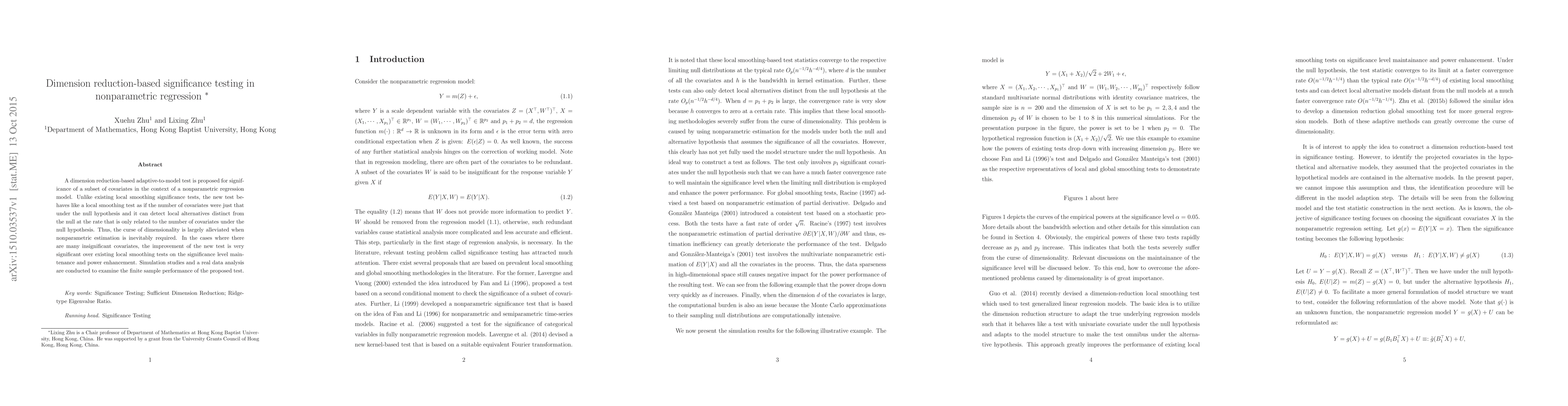 This paper proposes a dimension reduction-based adaptive test for assessing the significance of a subset of covariates in nonparametric regression, which effectively mitigates the curse of dimensionality and outperforms existing local smoothing tests, especially when numerous covariates are insignificant. Simulation studies and real data analysis validate the improved performance in maintaining significance levels and enhancing power.
