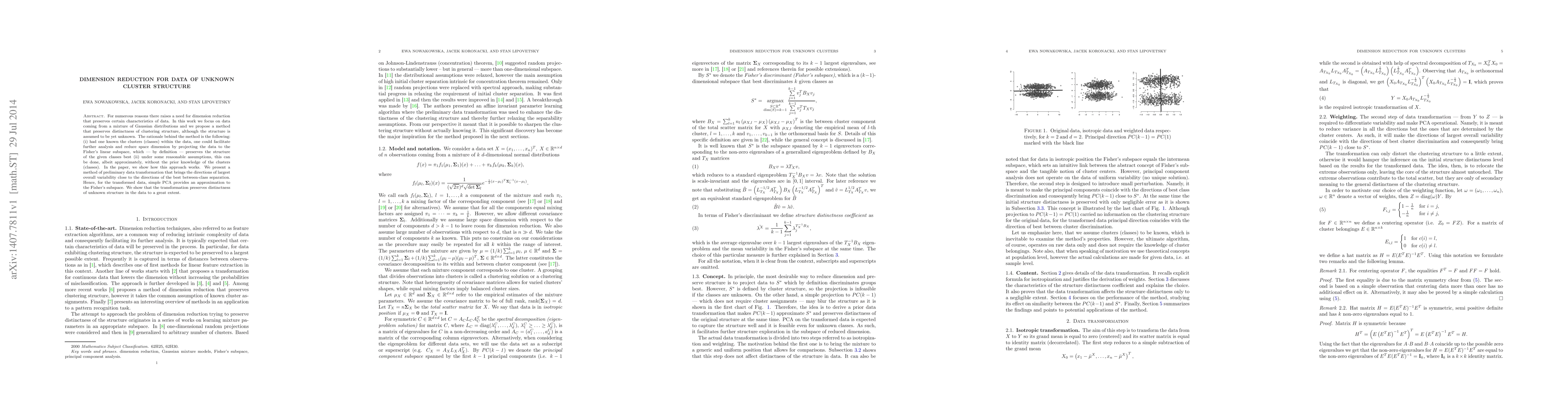 For numerous reasons there raises a need for dimension reduction that preserves certain characteristics of data. In this work we focus on data coming from a mixture of Gaussian distributions and we propose a method that preserves distinctness of clustering structure, although the structure is assumed to be yet unknown. The rationale behind the method is the following: (i) had one known the clusters (classes) within the data, one could facilitate further analysis and reduce space dimension by projecting the data to the Fisher's linear subspace, which -- by definition -- preserves the structure of the given classes best (ii) under some reasonable assumptions, this can be done, albeit approximately, without the prior knowledge of the clusters (classes). In the paper, we show how this approach works. We present a method of preliminary data transformation that brings the directions of largest overall variability close to the directions of the best between-class separation. Hence, for the transformed data, simple PCA provides an approximation to the Fisher's subspace. We show that the transformation preserves distinctness of unknown structure in the data to a great extent.