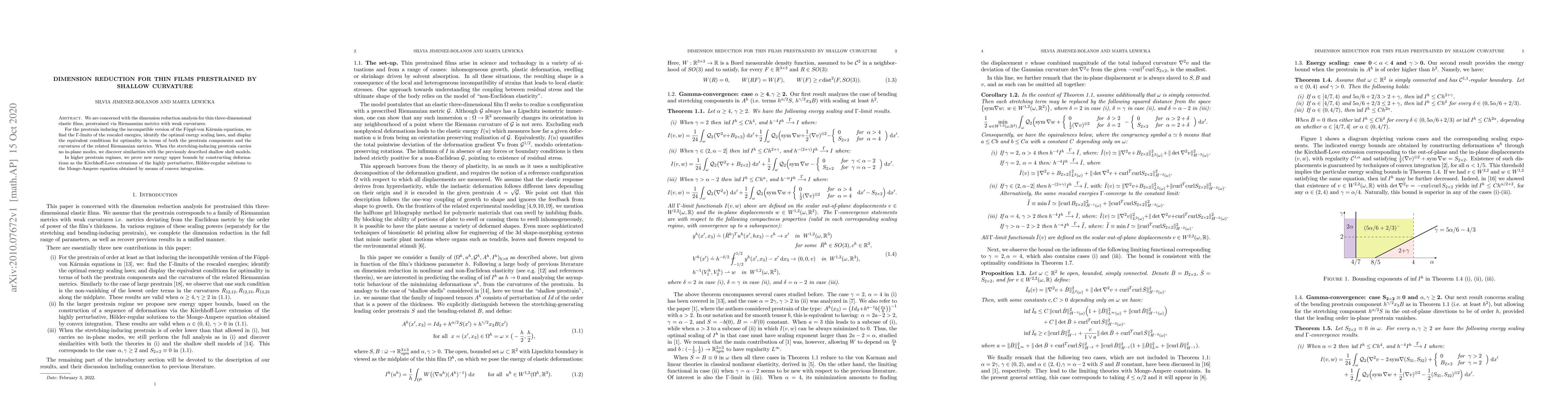 This paper investigates dimension reduction for thin elastic films prestressed by shallow curvature, deriving the $\Gamma$-limits of rescaled energies and identifying optimal energy scaling laws. It establishes new energy upper bounds for higher prestrain regimes through Kirchhoff-Love deformations and convex integration techniques.