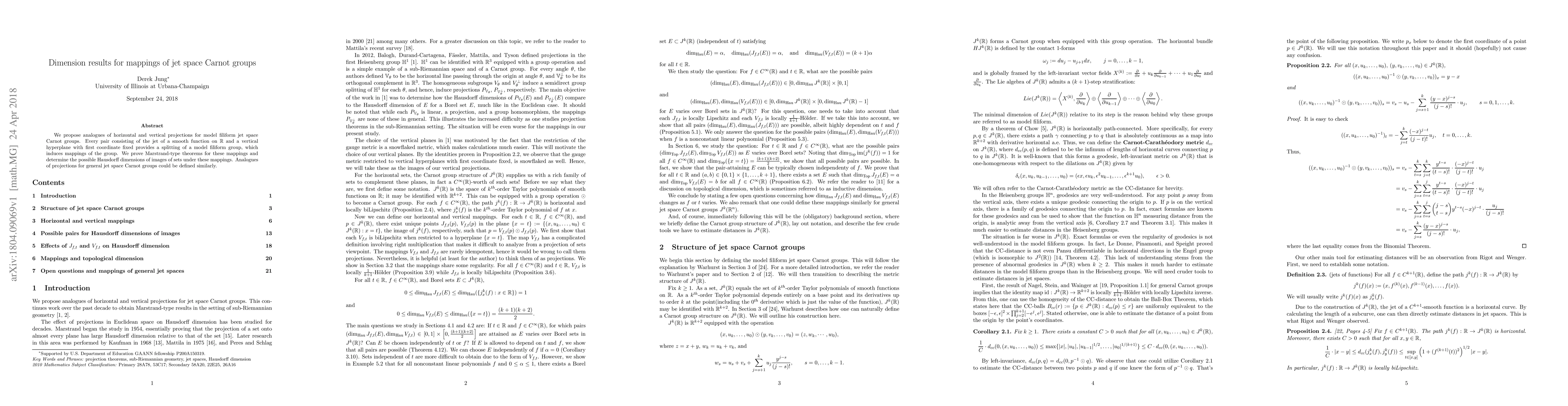 This paper proposes horizontal and vertical projection analogues for filiform jet space Carnot groups, showing how these induce mappings. It proves Marstrand-type theorems and determines the Hausdorff dimensions of images under these mappings.