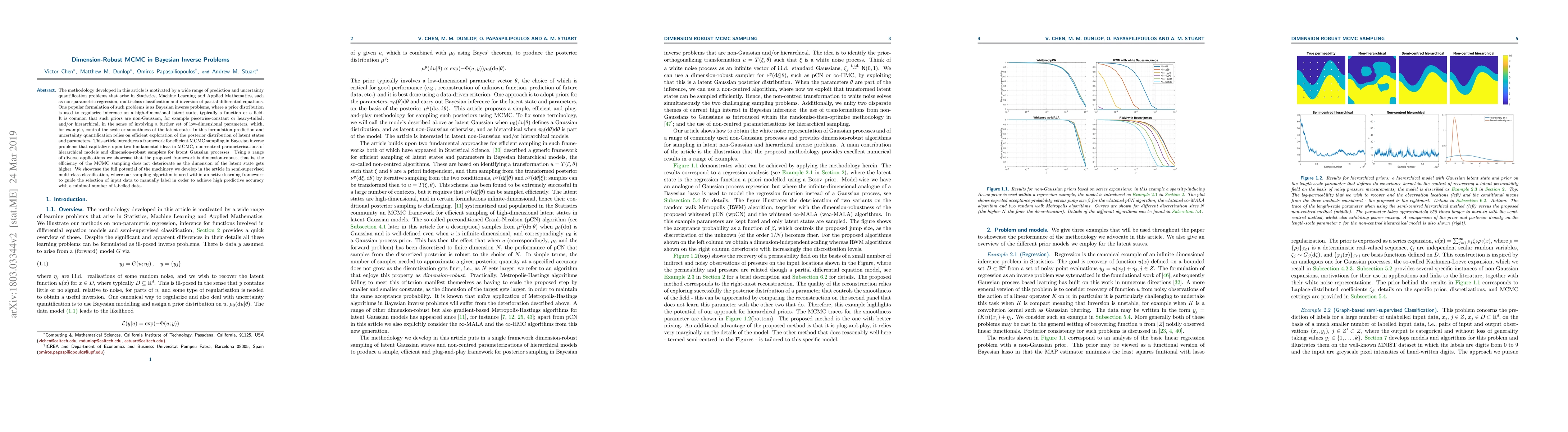 This paper introduces a dimension-robust MCMC framework for Bayesian inverse problems, leveraging non-centred parameterisations and dimension-robust samplers. The method maintains efficiency regardless of the latent state's high dimensionality, demonstrated through applications in semi-supervised multi-class classification.
