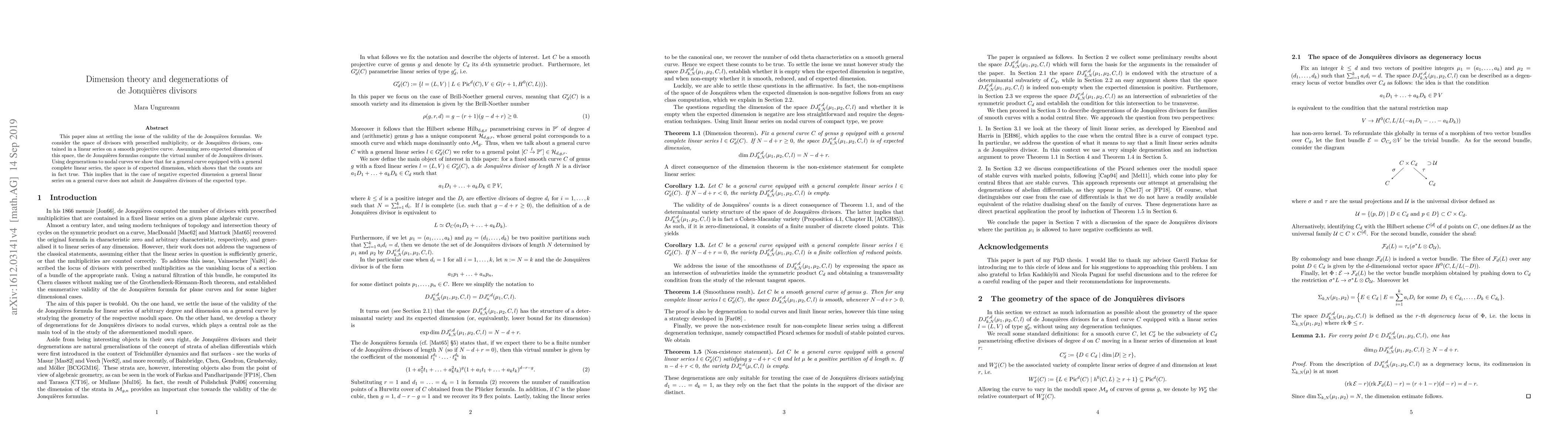 This paper validates de Jonquières formulas by showing that the space of divisors with prescribed multiplicity, or de Jonquières divisors, within a linear series on a smooth projective curve has the expected dimension. The use of degenerations to nodal curves confirms the counts for general curves and complete linear series.