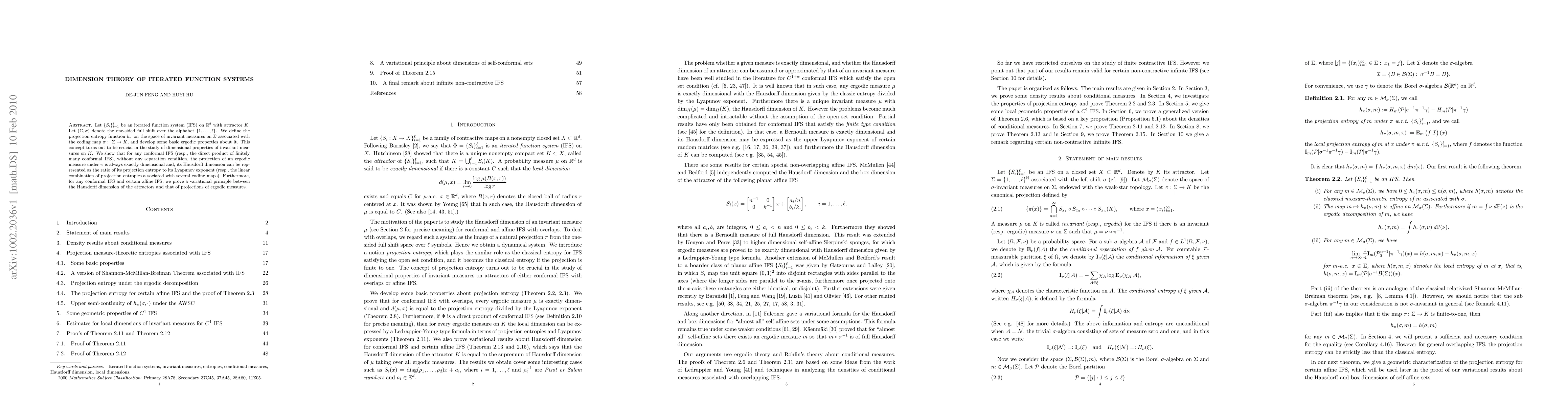 This paper explores the dimension theory of iterated function systems (IFS) and its relation to invariant measures on the attractor. It establishes a connection between the Hausdorff dimension of the attractor and that of the projections of ergodic measures under specific coding maps.