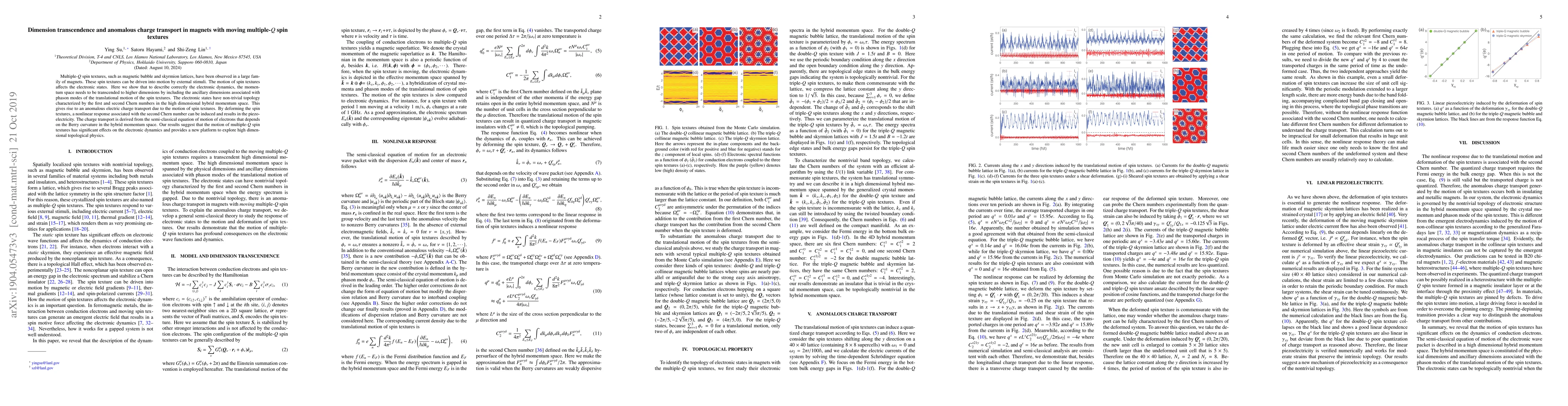 This paper investigates the impact of moving multiple-$Q$ spin textures on electronic dynamics in magnets, demonstrating that higher-dimensional momentum space is required to describe the anomalous charge transport. The study reveals a nonlinear response due to the second Chern number in the hybrid momentum space, suggesting a new platform for exploring high-dimensional topological physics.