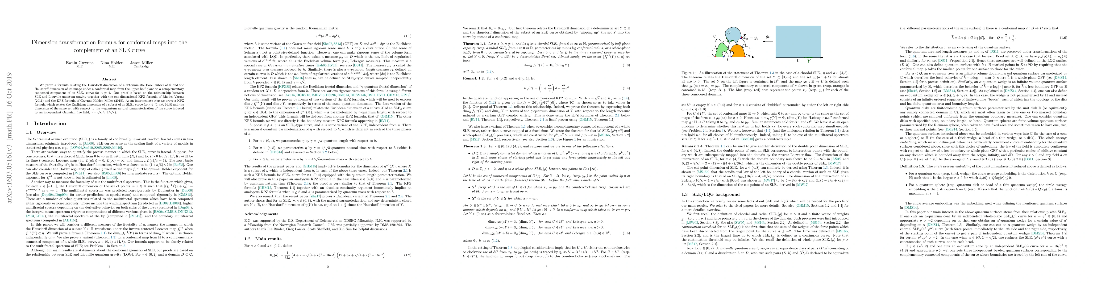 Researchers developed a formula to relate the dimension of a subset in the real line to its image under a conformal map from the upper half-plane to an SLE curve, with implications for understanding complex systems.