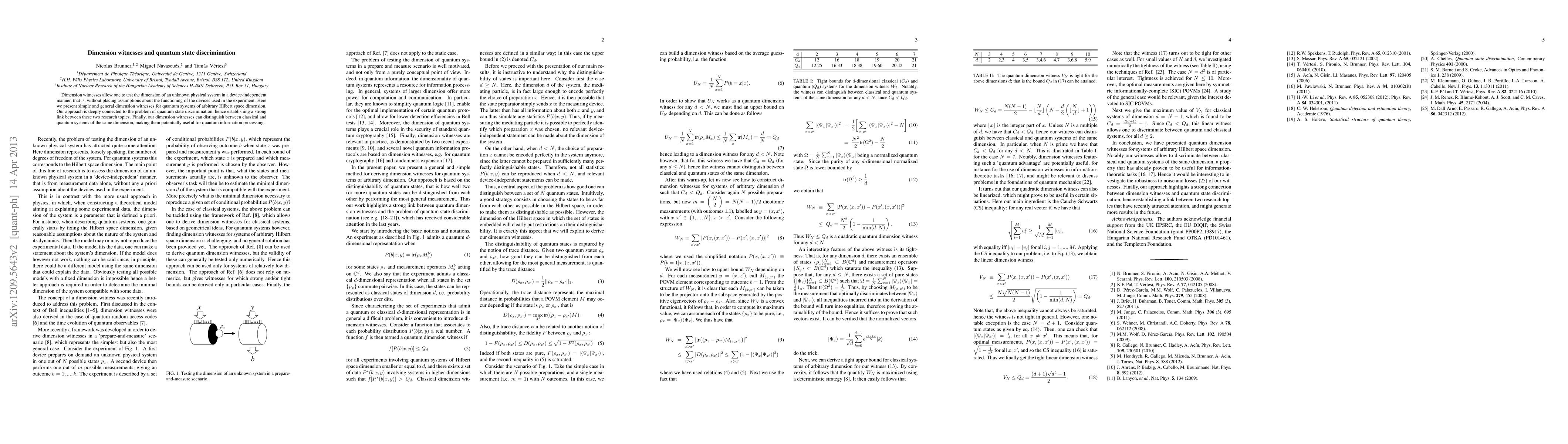 This paper introduces simple and general dimension witnesses for quantum systems, allowing device-independent testing of system dimensions. It establishes a strong link between dimension witnesses and quantum state discrimination, and demonstrates their potential utility in distinguishing between classical and quantum systems.