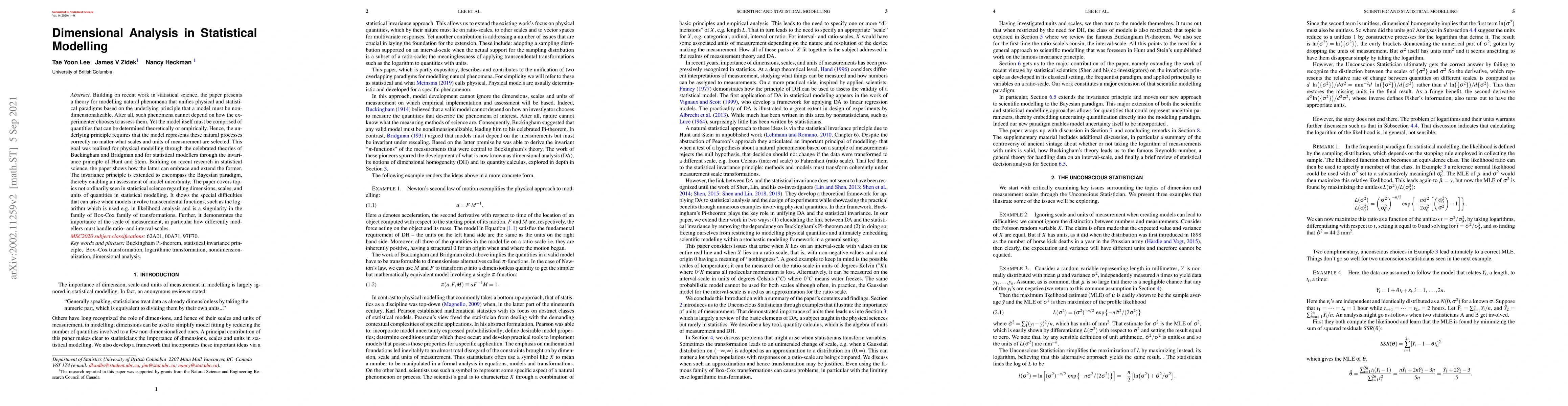 This paper develops a unified theory for statistical modelling that integrates physical and statistical principles, emphasizing nondimensionalizability to ensure models remain valid across different scales and units. It extends the invariance principle to the Bayesian paradigm for assessing model uncertainty and addresses challenges in handling transcendental functions and different measurement scales.
