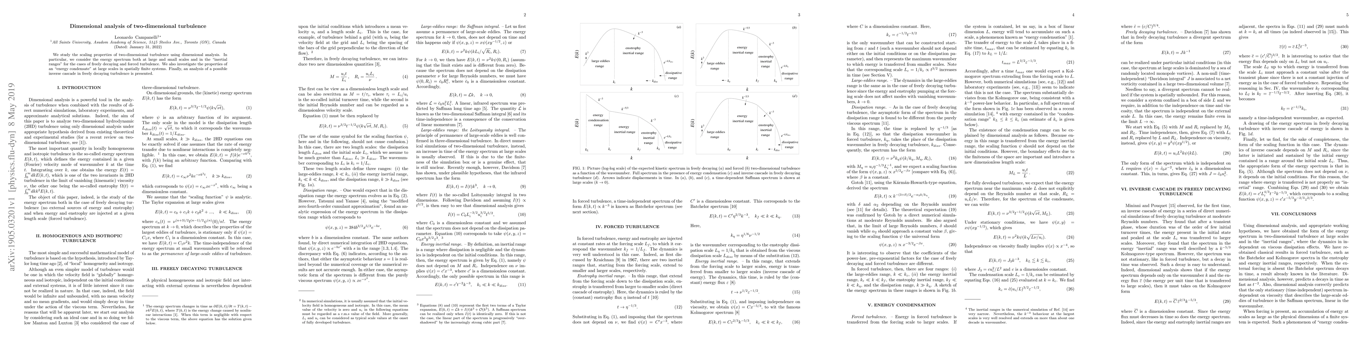 This paper employs dimensional analysis to explore the scaling properties of two-dimensional turbulence, focusing on the energy spectrum in inertial ranges for both freely decaying and forced turbulence, and investigates the phenomenon of an "energy condensate" and potential inverse cascade in freely decaying systems.