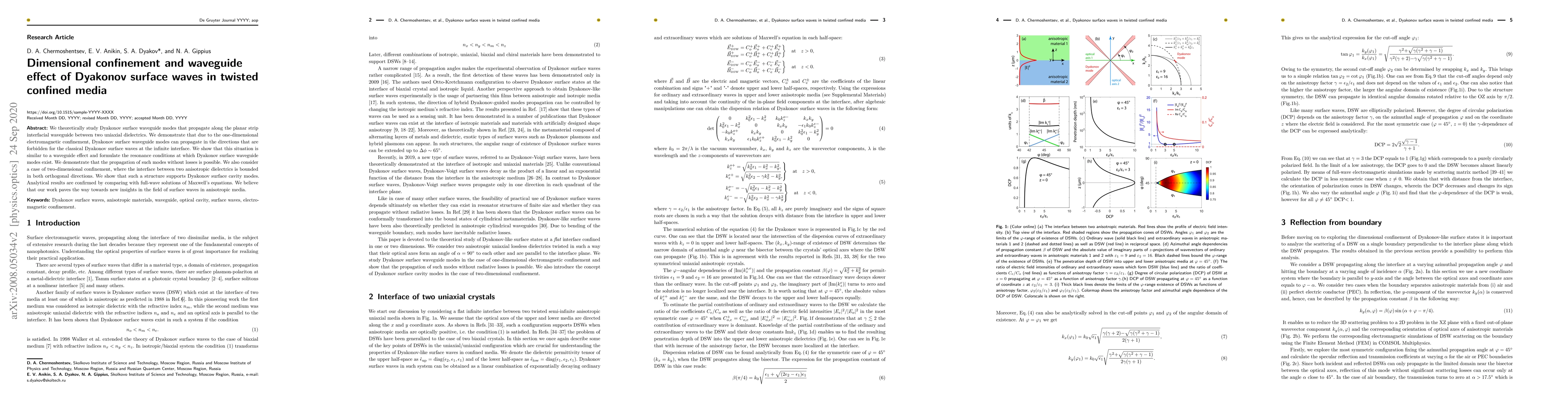 This paper theoretically investigates Dyakonov surface waveguide modes in twisted confined media, demonstrating one-dimensional electromagnetic confinement allows propagation in forbidden directions akin to waveguide effects. It also explores two-dimensional confinement supporting Dyakonov surface cavity modes, confirmed by Maxwell's equations, suggesting new insights into surface waves in anisotropic media.
