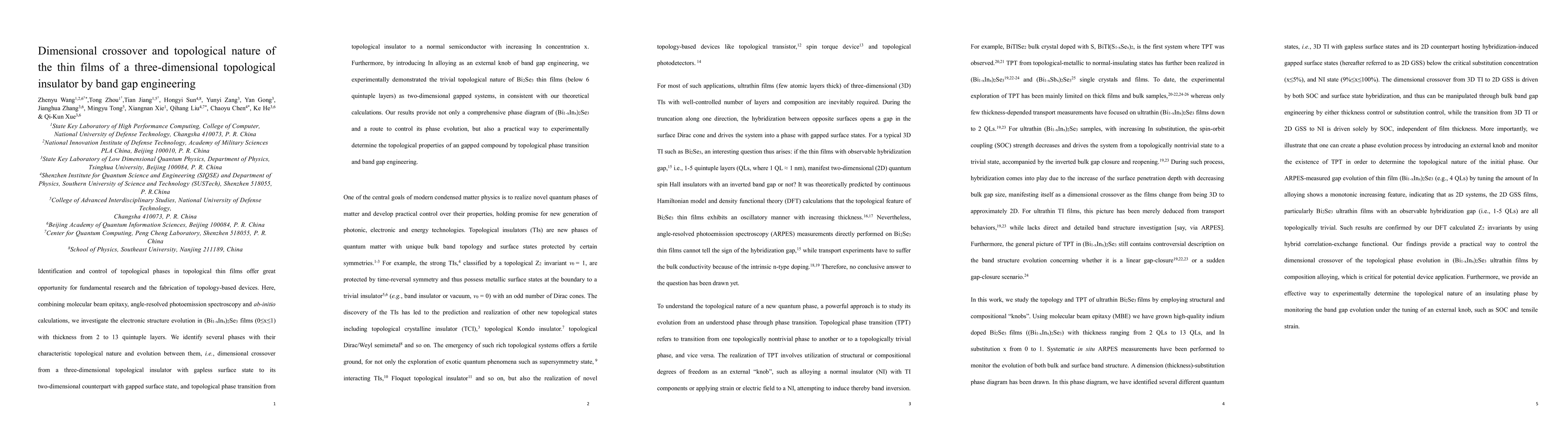 This paper investigates the electronic structure and topological phases in (Bi1-xInx)2Se3 thin films using molecular beam epitaxy, photoemission spectroscopy, and ab-initio calculations. The study reveals dimensional crossover and topological phase transitions, providing a comprehensive phase diagram and a method to control and determine the topological properties via band gap engineering.