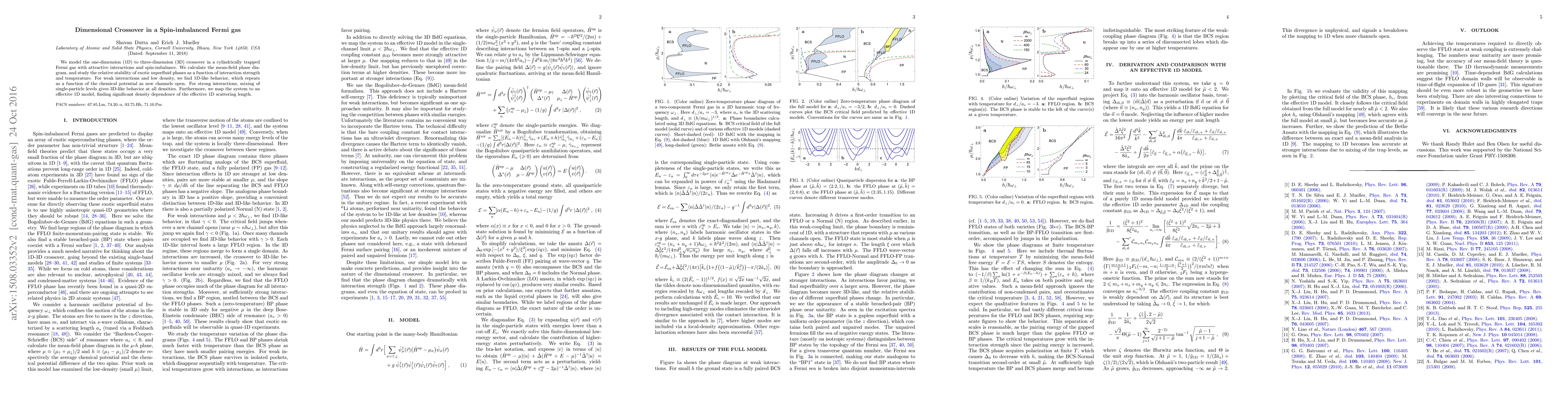The research models the 1D to 3D crossover in a cylindrically trapped Fermi gas with attractive interactions and spin-imbalance using mean-field theory and Bogoliubov-de Gennes formalism. It calculates the mean-field phase diagram and examines the stability of exotic superfluid phases as a function of interaction strength and temperature.