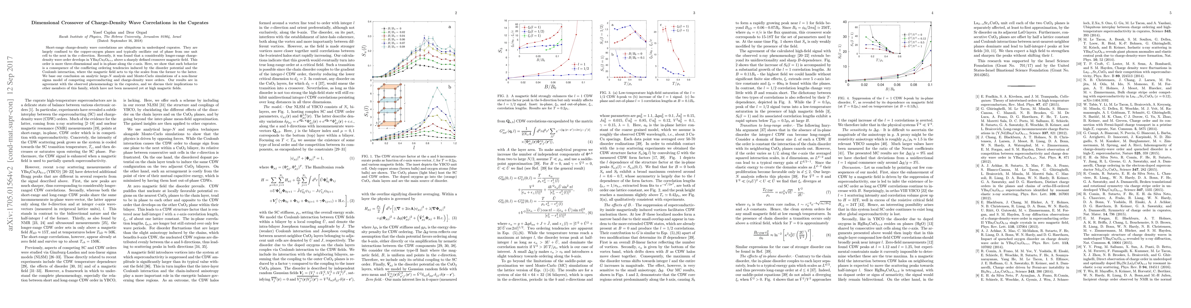This paper investigates the dimensional crossover of charge-density wave correlations in underdoped cuprates, revealing a transition from short-range, out-of-phase correlations to longer-range, three-dimensional in-phase order induced by a magnetic field. The findings are supported by large-N analysis and Monte-Carlo simulations, suggesting the magnetic field shifts the balance between disorder and Coulomb interactions.