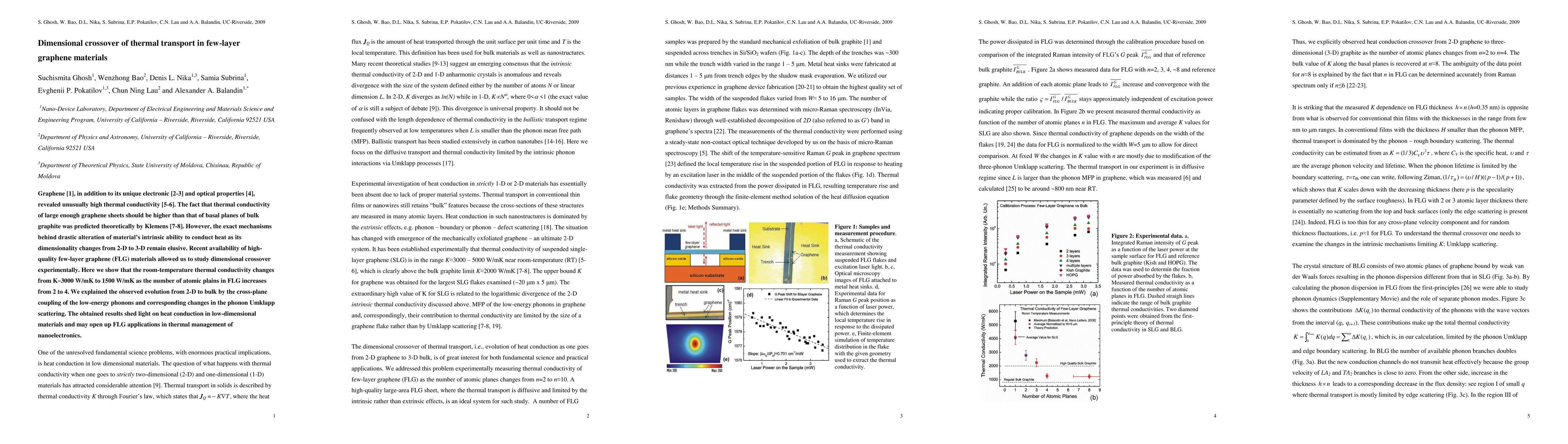 This study investigates the thermal conductivity changes in few-layer graphene as its dimensionality shifts from 2-D to 3-D, revealing a decrease from 3000 W/mK to 1500 W/mK with increasing layer count. The observed dimensional crossover is attributed to cross-plane phonon coupling and changes in phonon scattering, providing insights into heat conduction mechanisms in low-dimensional materials.