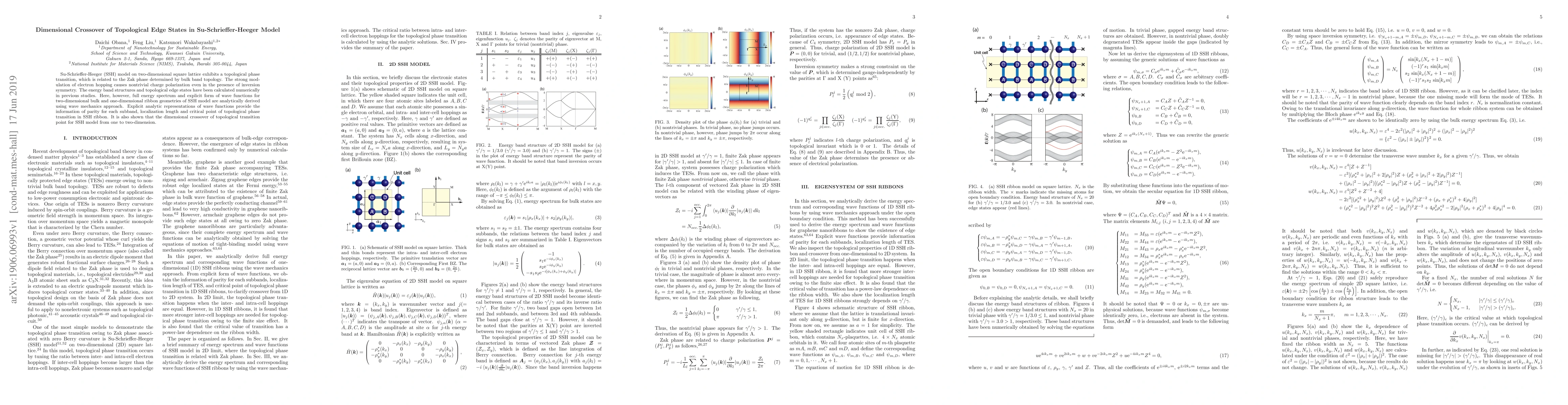 This paper analytically derives the full energy spectrum and wave functions for the SSH model in both 2D and 1D geometries, revealing the dimensional crossover of topological edge states and providing insights into the parity, localization, and critical transition points. The study highlights how strong modulation in electron hopping leads to nontrivial charge polarization even with inversion symmetry.