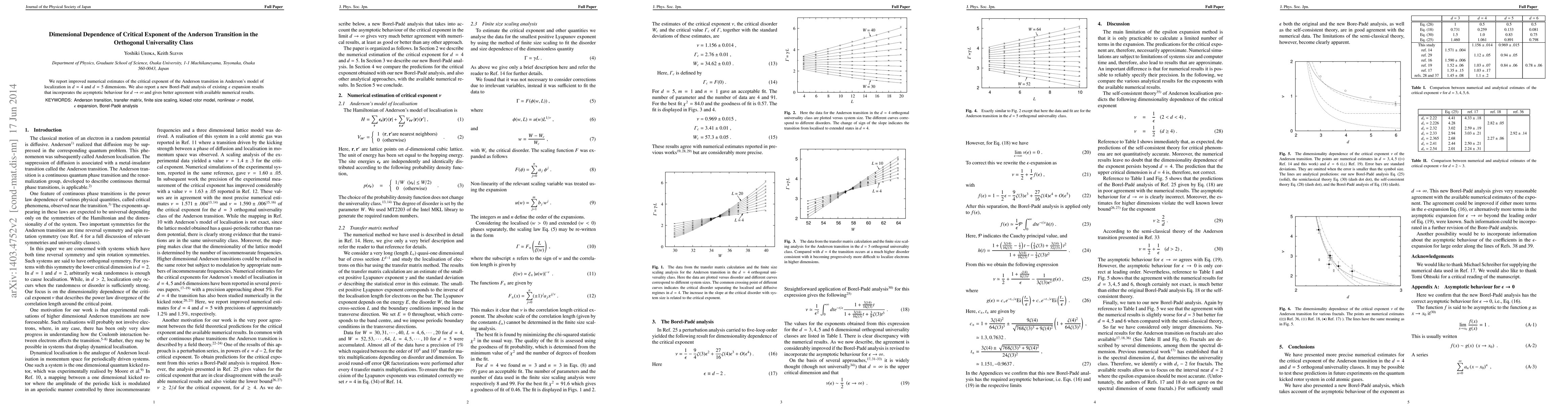 This paper provides refined numerical estimates of the critical exponent for the Anderson transition in dimensions $d=4$ and $d=5$, and introduces a new Borel-Padé analysis that enhances the agreement with numerical results by incorporating asymptotic behavior for large dimensions.