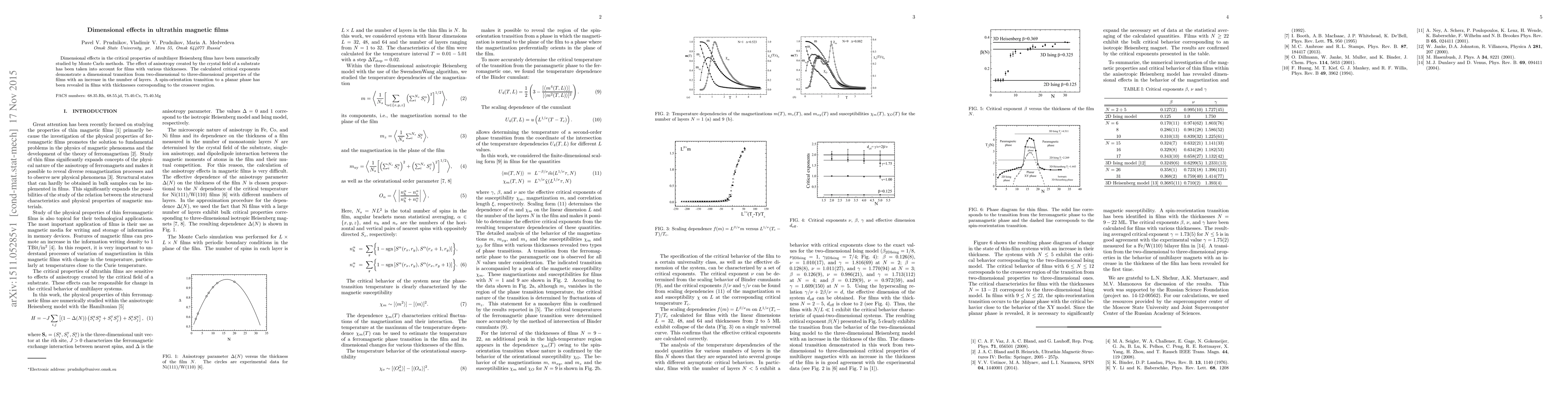 Dimensional effects in the critical properties of multilayer Heisenberg films have been numerically studied by Monte Carlo methods. The effect of anisotropy created by the crystal field of a substrate has been taken into account for films with various thicknesses. The calculated critical exponents demonstrate a dimensional transition from two-dimensional to three-dimensional properties of the films with an increase in the number of layers. A spin-orientation transition to a planar phase has been revealed in films with thicknesses corresponding to the crossover region.